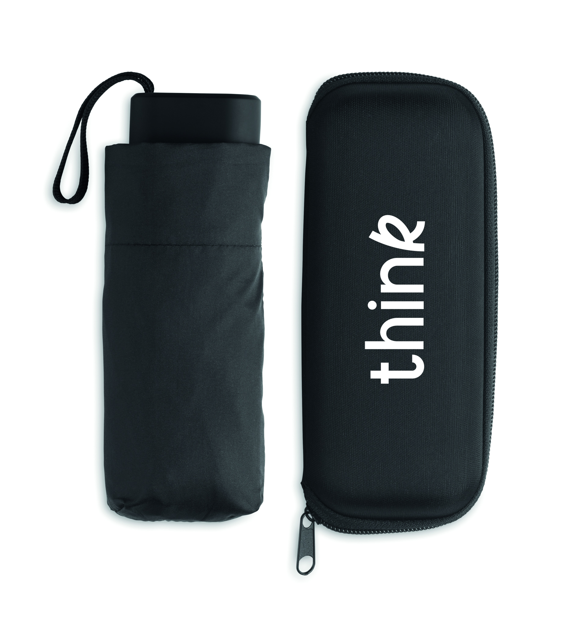 19''Regenschirm aus 190T-Pongee. 5fach gefaltet. Windbeständig. Lieferung im EVA-Etui mit Reißverschluss. Manuelle Öffnung und Schließung.