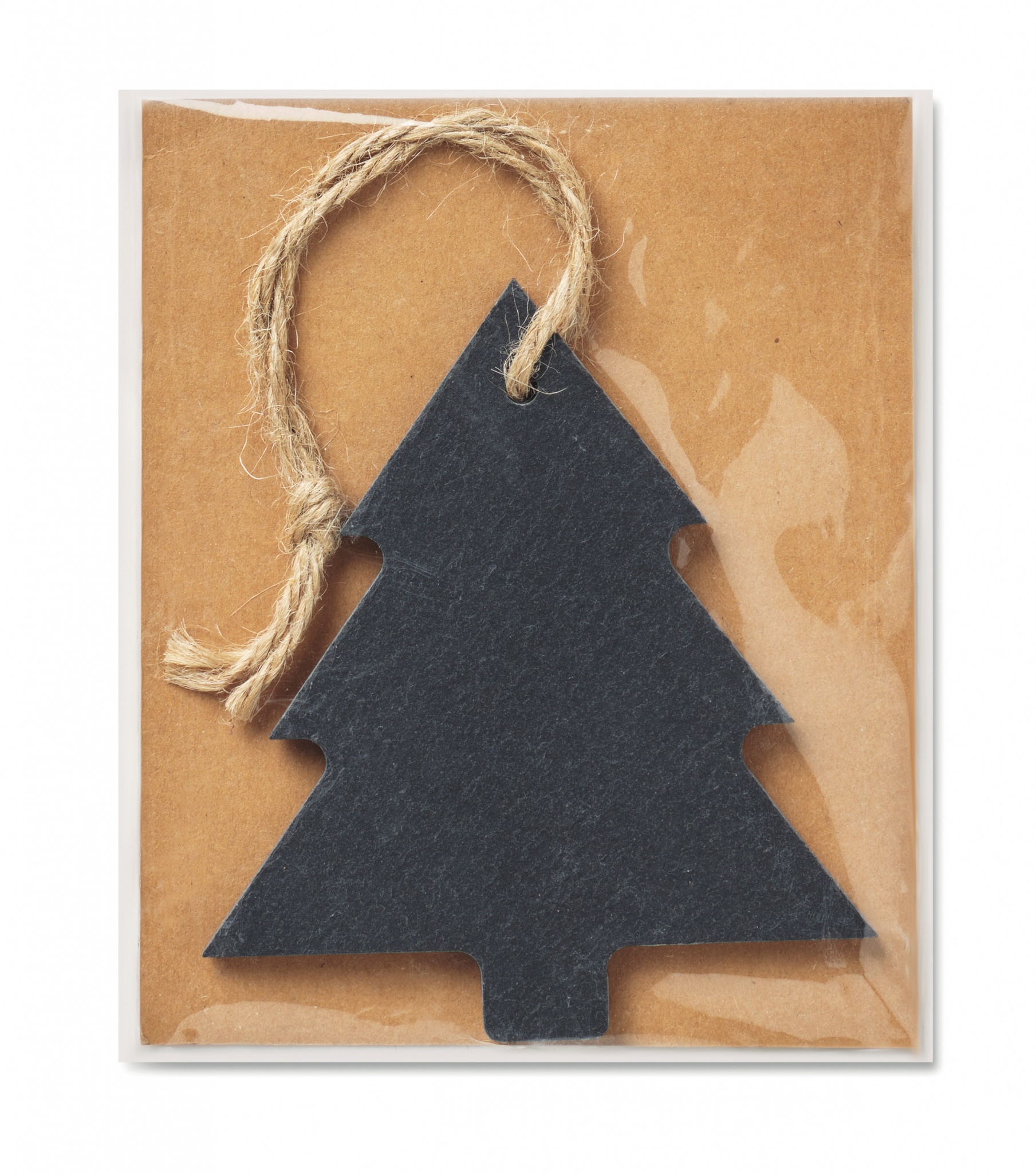 Anhänger aus Schiefer in Form einer Tanne. Mit Aufhänger aus Kordel.