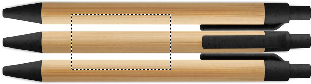 Druckkugelschreiber mit Schaft aus Bambus. Drücker, Clip und Spitze aus Weizenstroh (50%) und ABS-Kunststoff (50%). Blaue Tinte.