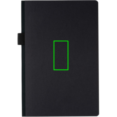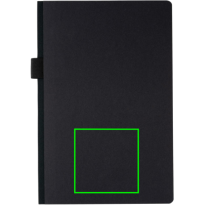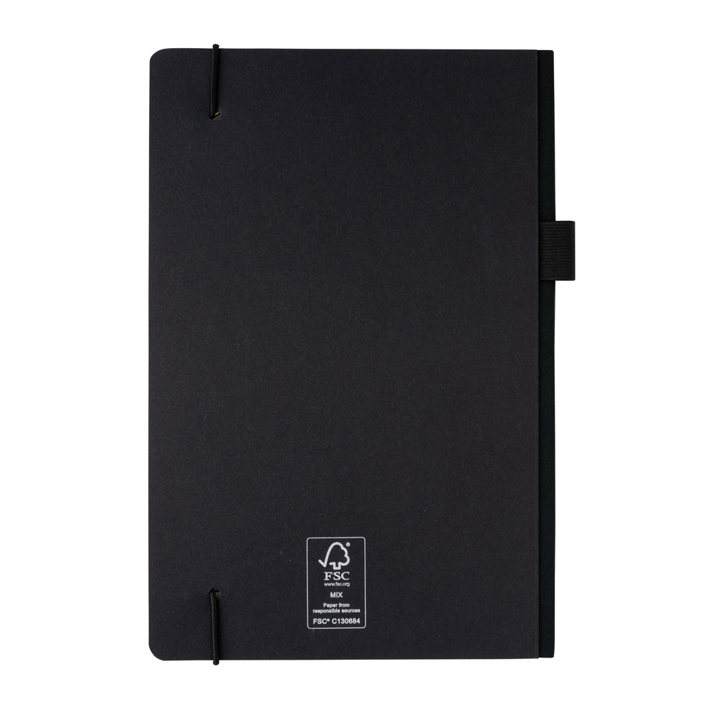 This FSC® deluxe hardcover notebook features a FSC-certified paper cover with elastic pen loop and ribbon page marker in matching black accent. In the back you willl find a pocket to store your loose notes. 80 sheets/160 pages of cream, FSC®-certified lined paper.