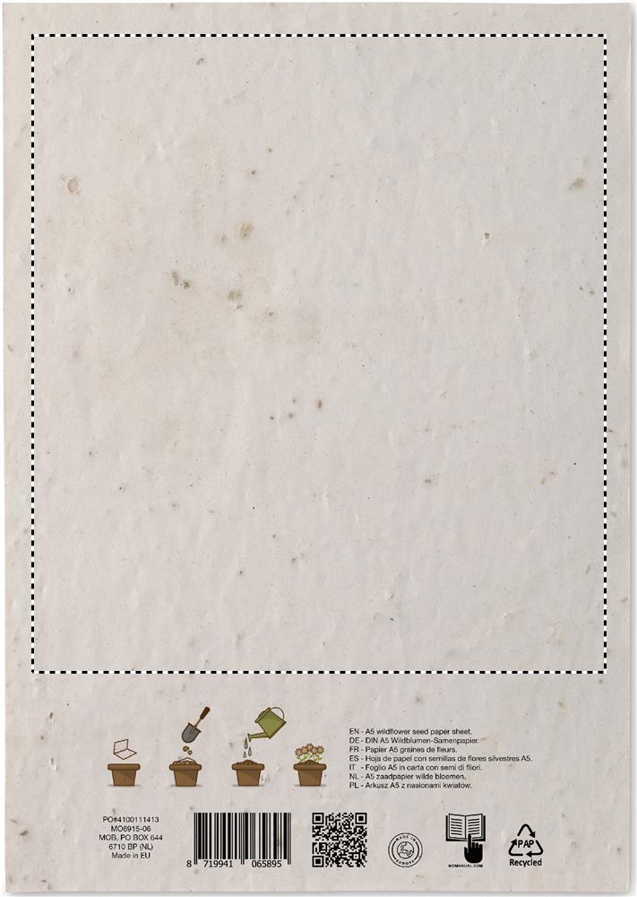 A5 wildflower seed paper sheet, White