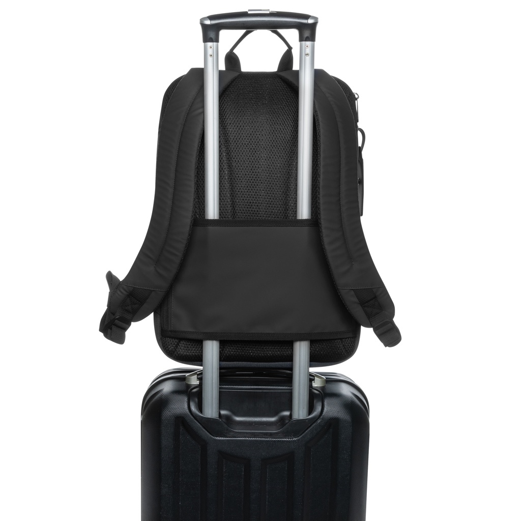 The clean design makes the backpack highly versatile and ideal for work or leisure. It’s smart enough for the boardroom, yet it still offers all the convenience and comfort of a backpack. Protect your 15.6 inch laptop with a separate, padded back compartment. Retrieve your essential items such as passport, ticket or smartphone at security or customs with this convenient, easy-to-access top pocket. The internal mesh pockets keep your small essentials organised. There is a luggage tag on the side. Made with recycled polyester embedded with the AWARE™ tracer. 2% of proceeds of each product sold with AWARE™ will be donated to Water.org. PVC free.