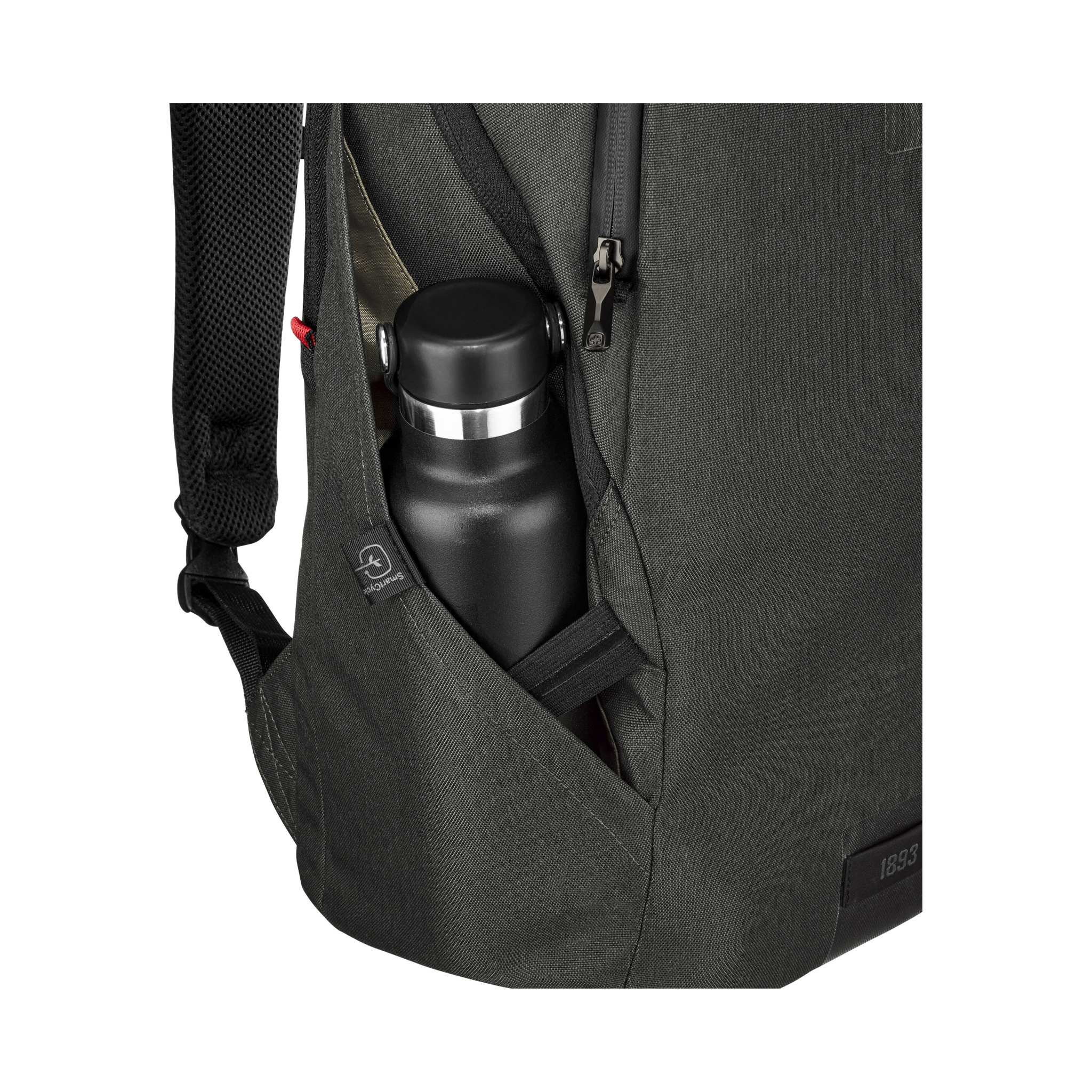 The backpack has a dedicated compartment for a 16 `laptop and a 10` tablet, an organizer for keeping things tidy and side zip pockets. The backpack has a Pass-Thru sleeve that allows you to slide the backpack on the handle of the suitcase, which is perfect for traveling and an S / R buckle to protect against theft. The outer material of the bag is made of recycled PET bottles.