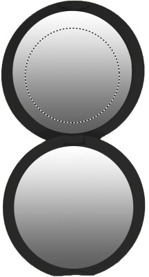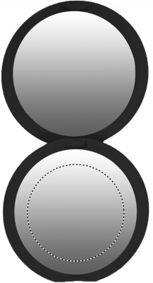 Double sided compact mirror with rubberized finish, with magnifying and standard mirror.