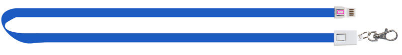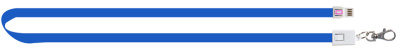 Plastic lanyard with universal charging cable (for Android and IOS) and small snap hook. Your logo will be printed on the lanyard (only 1 colour print possible).