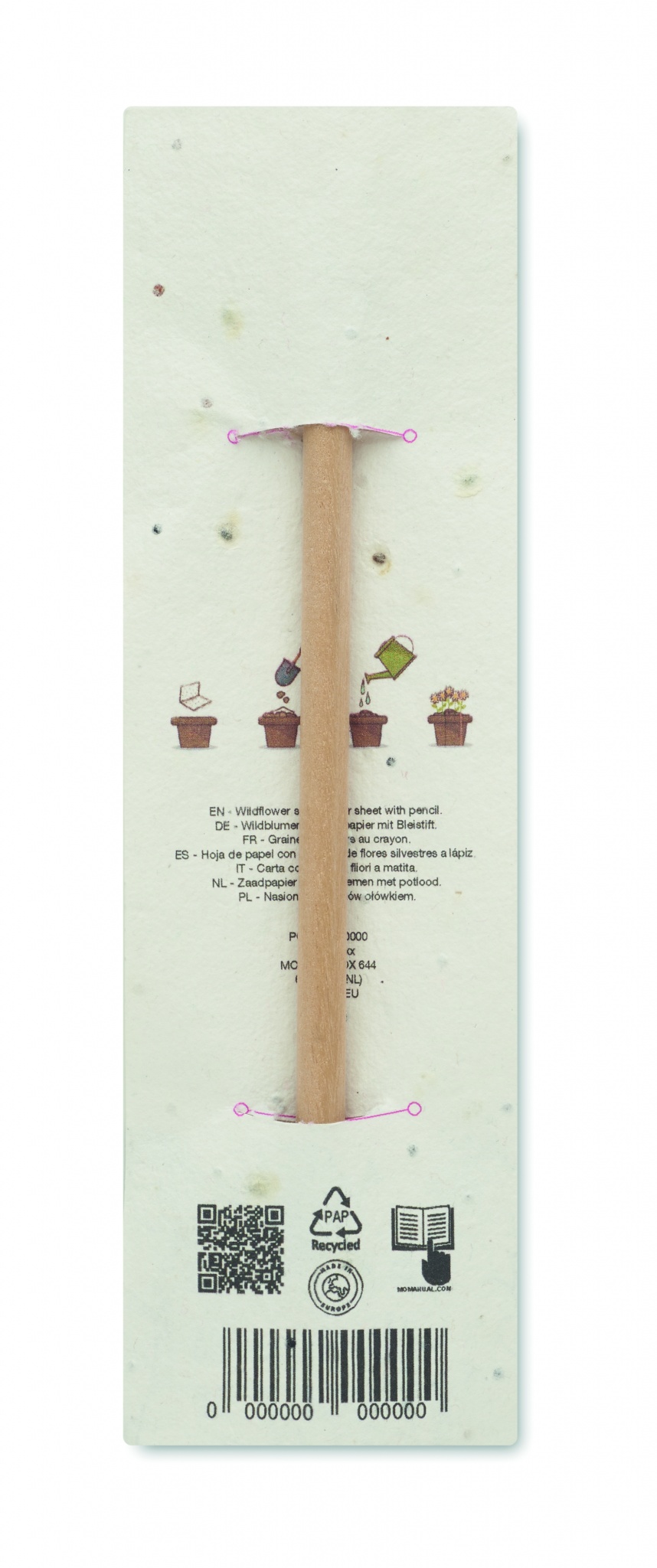 Natural wood pencil with eraser. Presented in seed paper ( wildflowers) pouch.