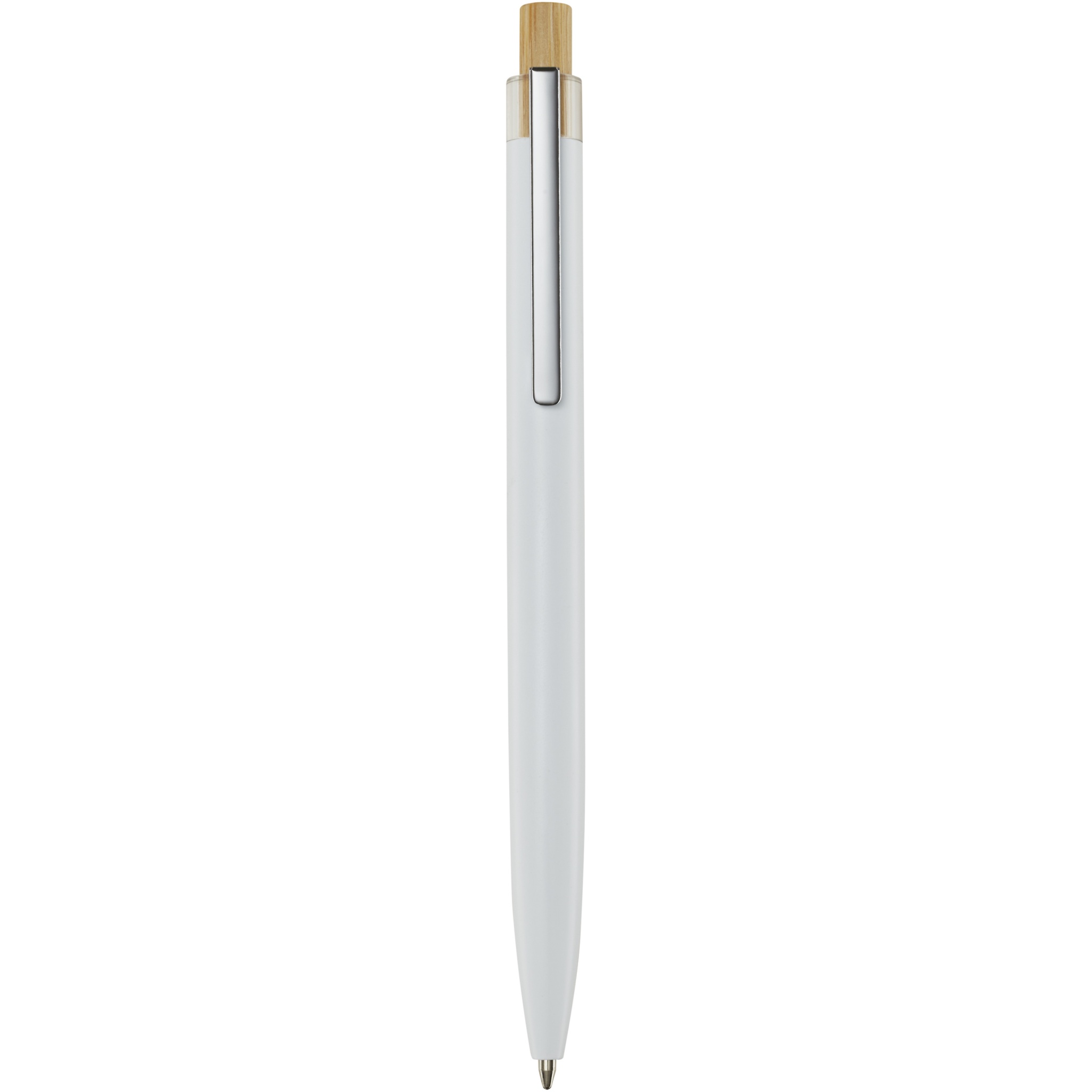 The Nooshin ballpoint pen is made from recycled aluminium, which requires less energy than producing aluminium from raw materials. It also reduces the amount of waste in landfills and helps to conserve natural resources aiming to reduce greenhouse emissions. The push button is made of bamboo. Ink colour: Black. Writing length: 800 metres. Nib size: 1.00 mm.
