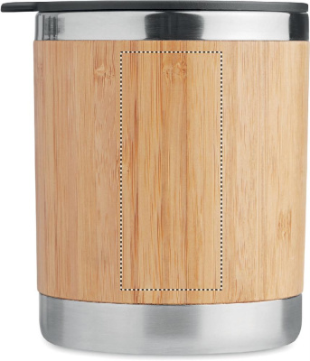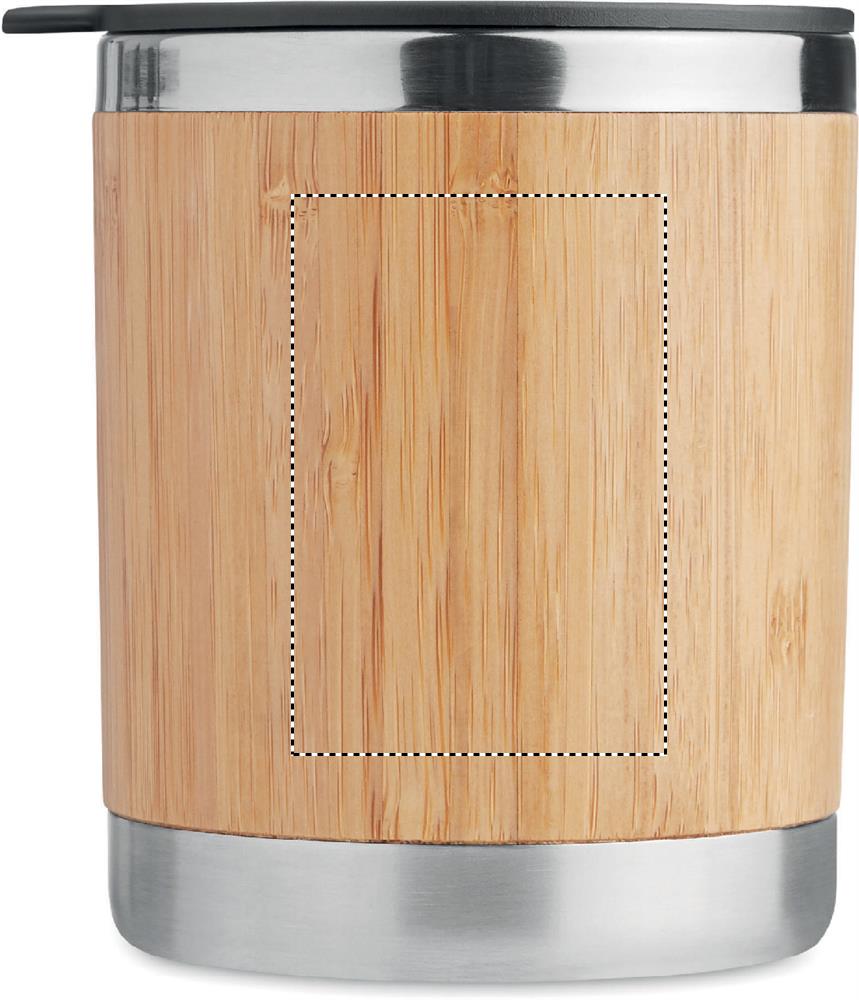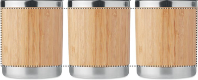 Double walled stainless steel tumbler with bamboo case and moveable drink hole. Capacity 250 ml. Bamboo is a natural product, there may be slight variations in colour and size per item, which can affect the final decoration outcome.