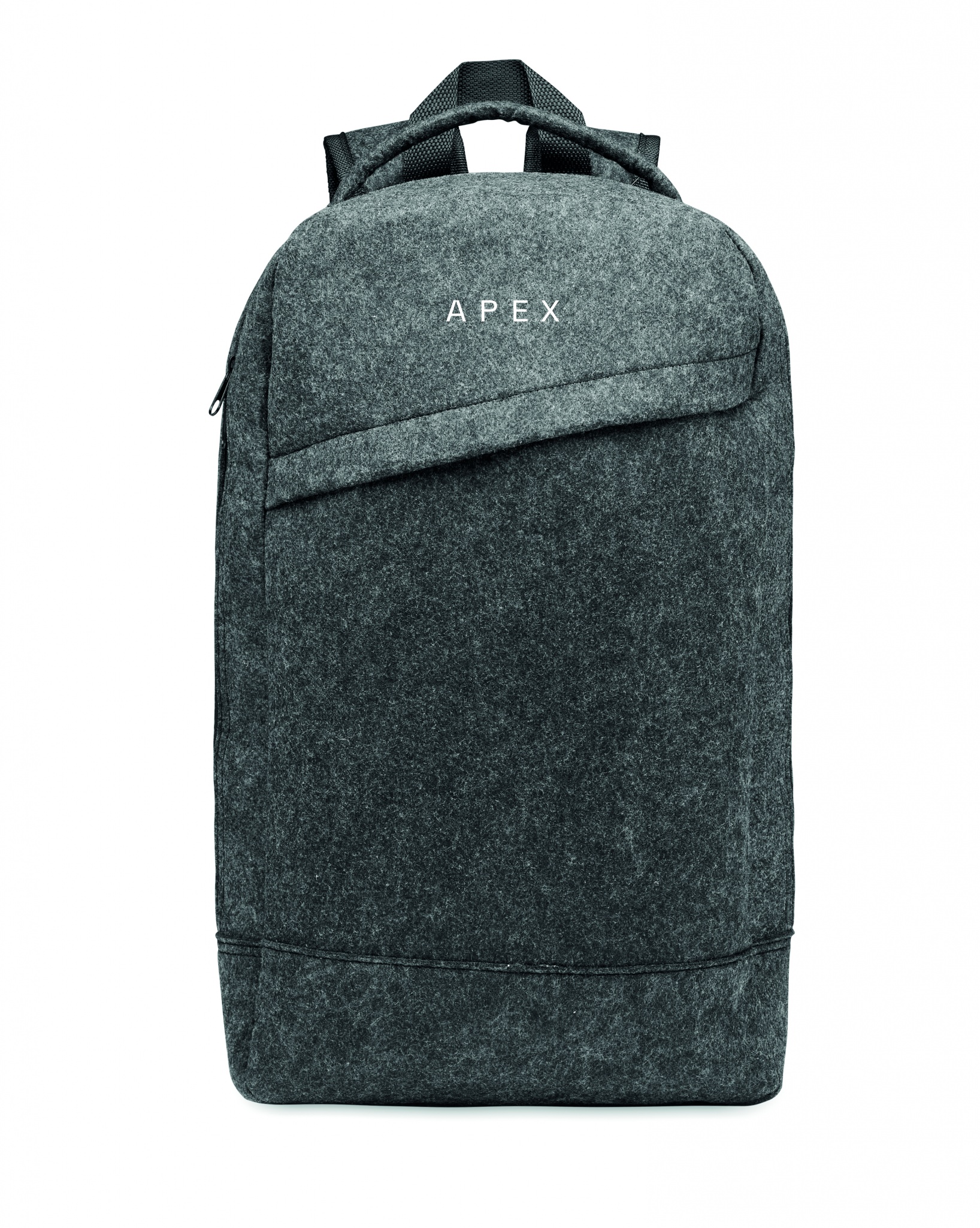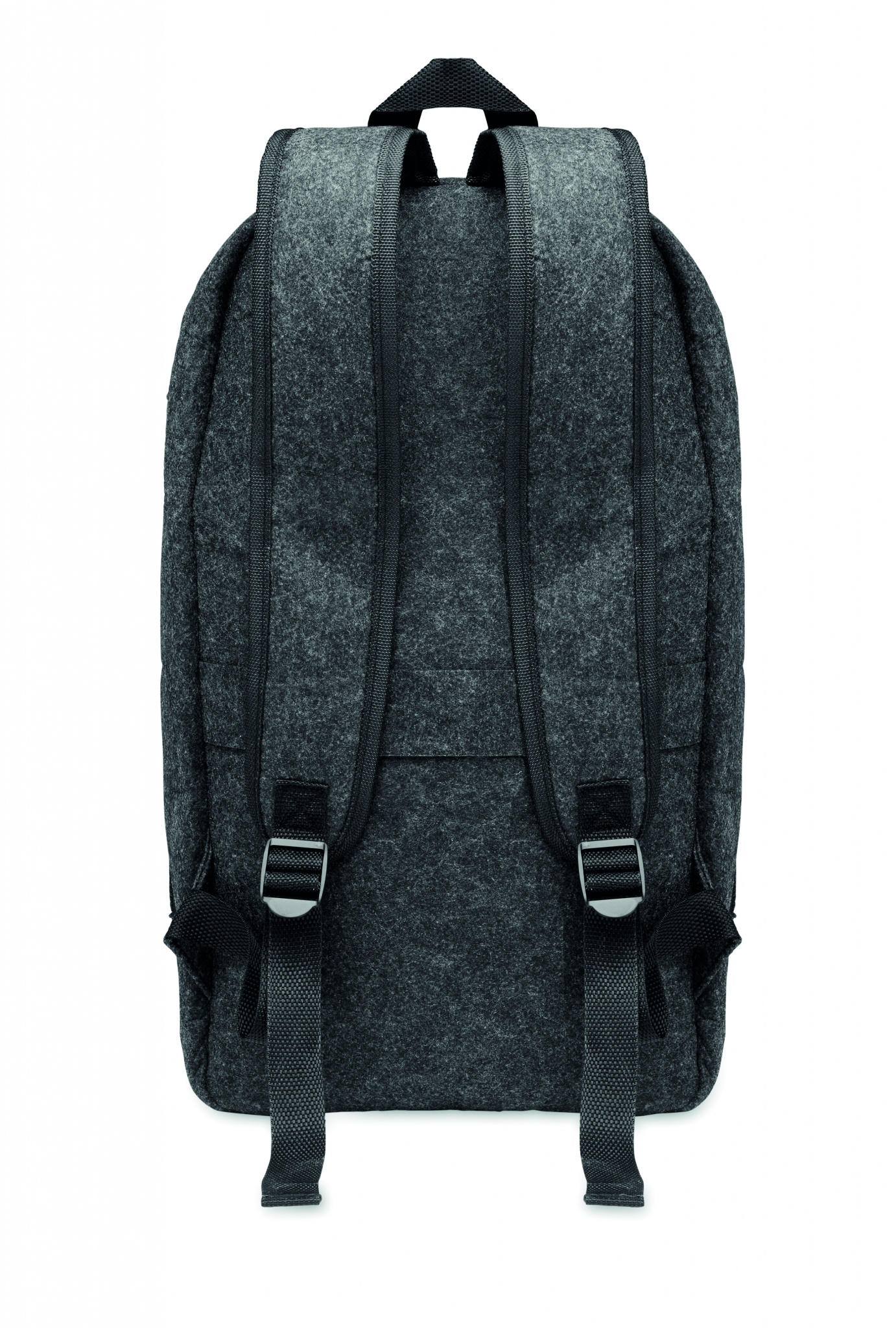 13-tolline RPET-vildist sülearvuti seljakott polsterdatud õla ja peamise sisemise sahtliga rihmaga. Sees lukuga sahtel. Käru hoidik tagaküljel.