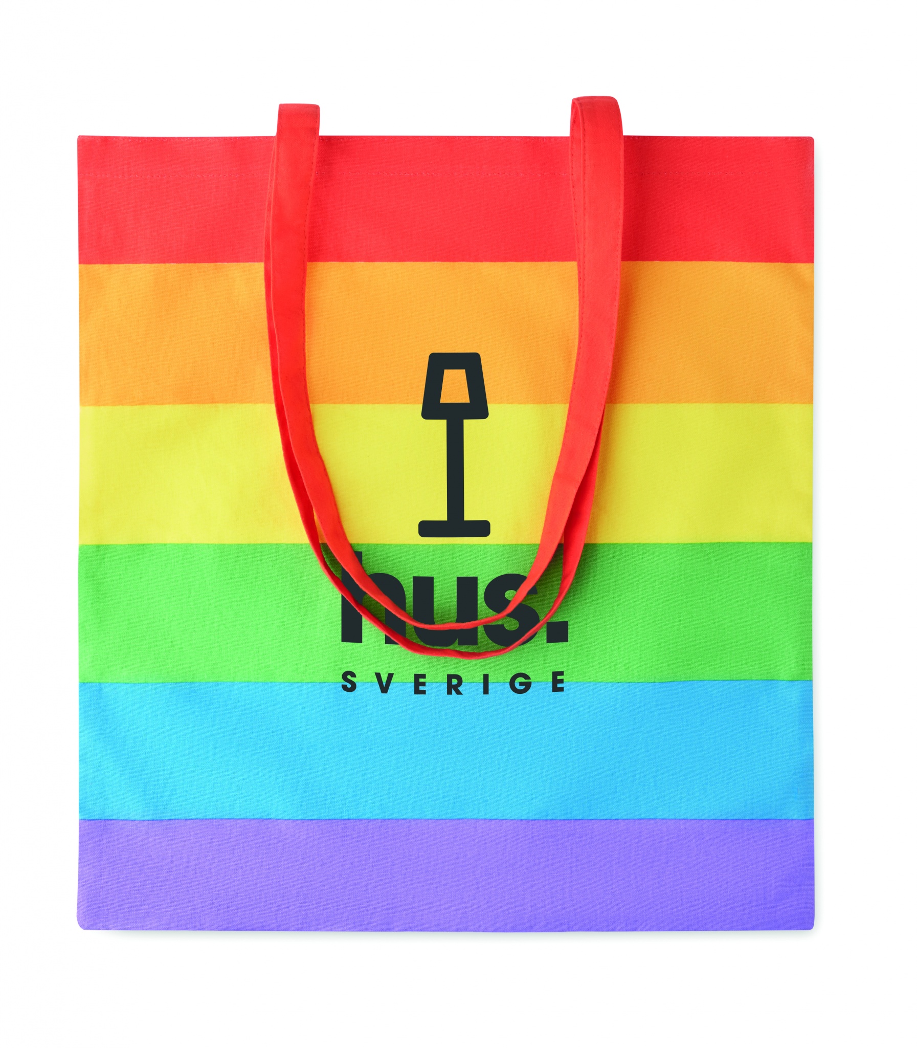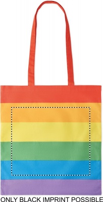 Pikkade sangadega vikerkaarepuuvillane ostukott. 200 gr/m².