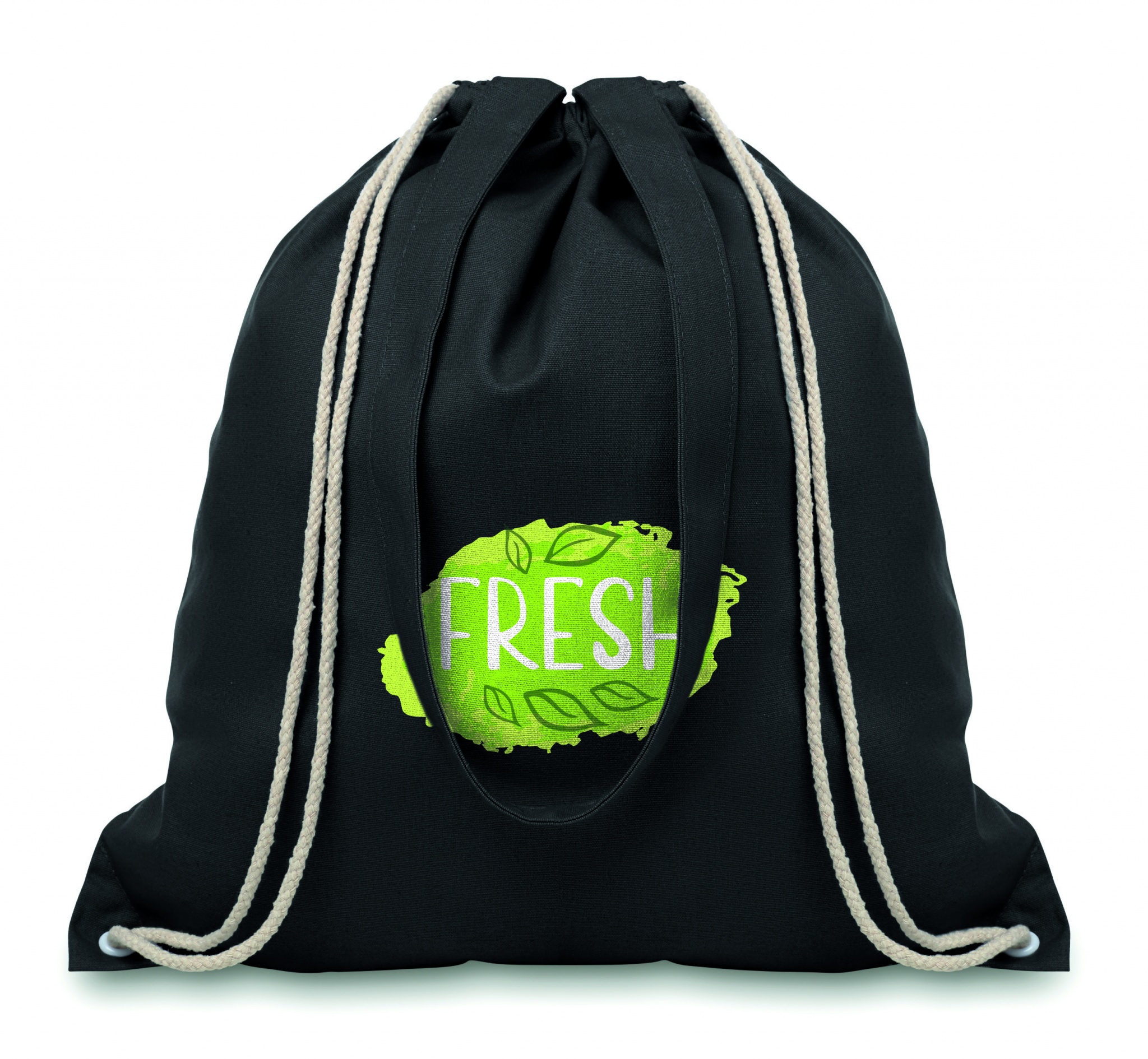 Pikkade sangade ja pingutusnööriga lõuendist ostukott. 220 g/m².