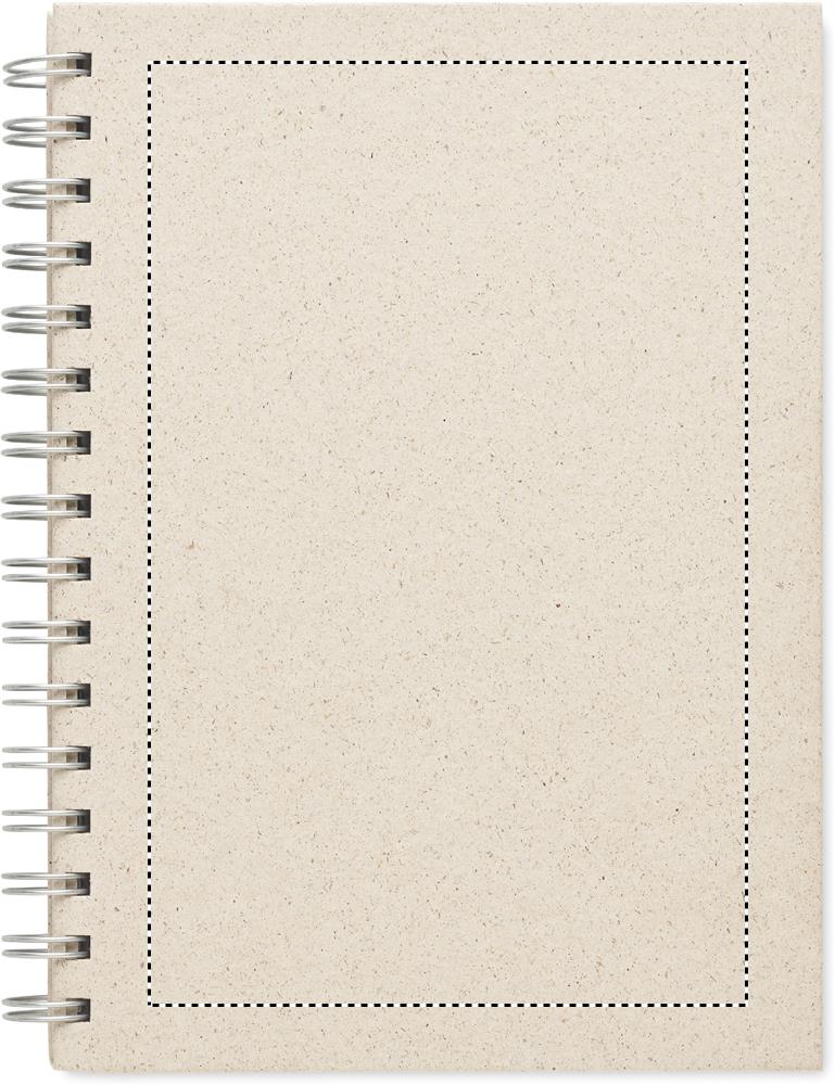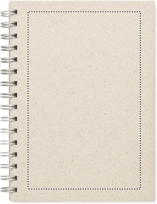 A5 murupaberist märkmik. Murupaberist kõva kate. Kahejuhtmeline. 160 joonega murupaberilehte (80 lehte). 95 gsm paber. 40% murukiude sisaldav murupaber.