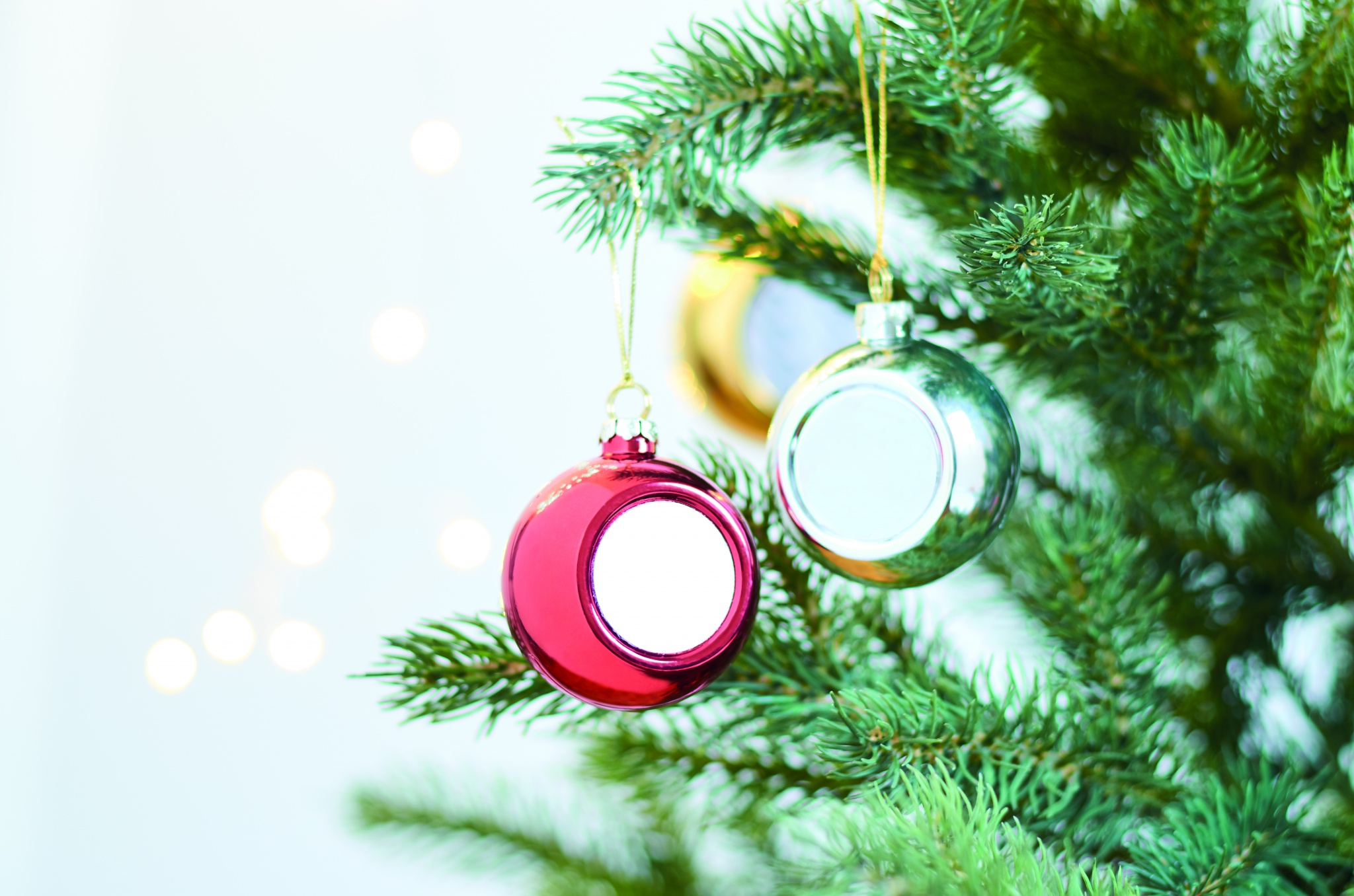 Läikivast PP-st jõulukaunistus koos plaadiga sublimatsioonitrüki jaoks. Läbimõõt 6 cm.