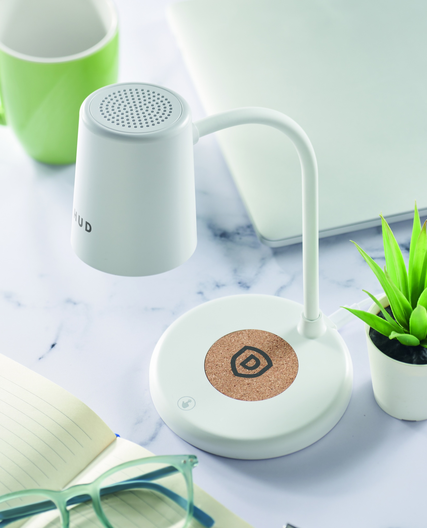 Logotrade firmakingituse foto: Juhtmeta laadija, lambikõlar