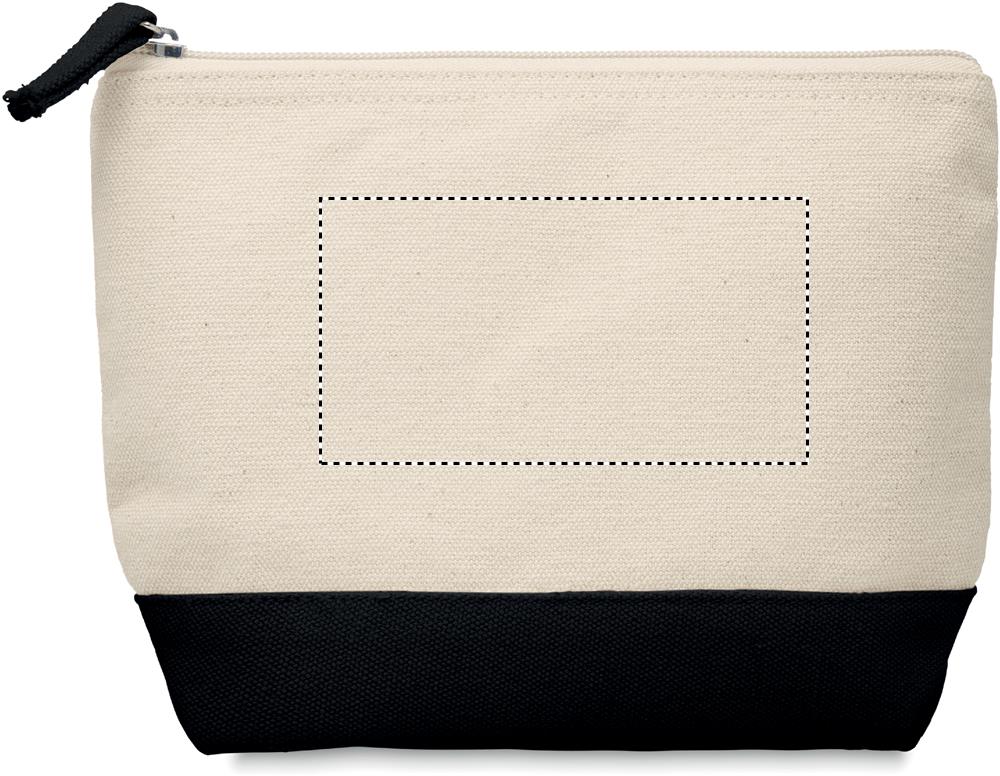 Puuvillasest kosmeetikakott värvilise põhja ja sobiva tõmblukuga. 340 gr/m².