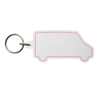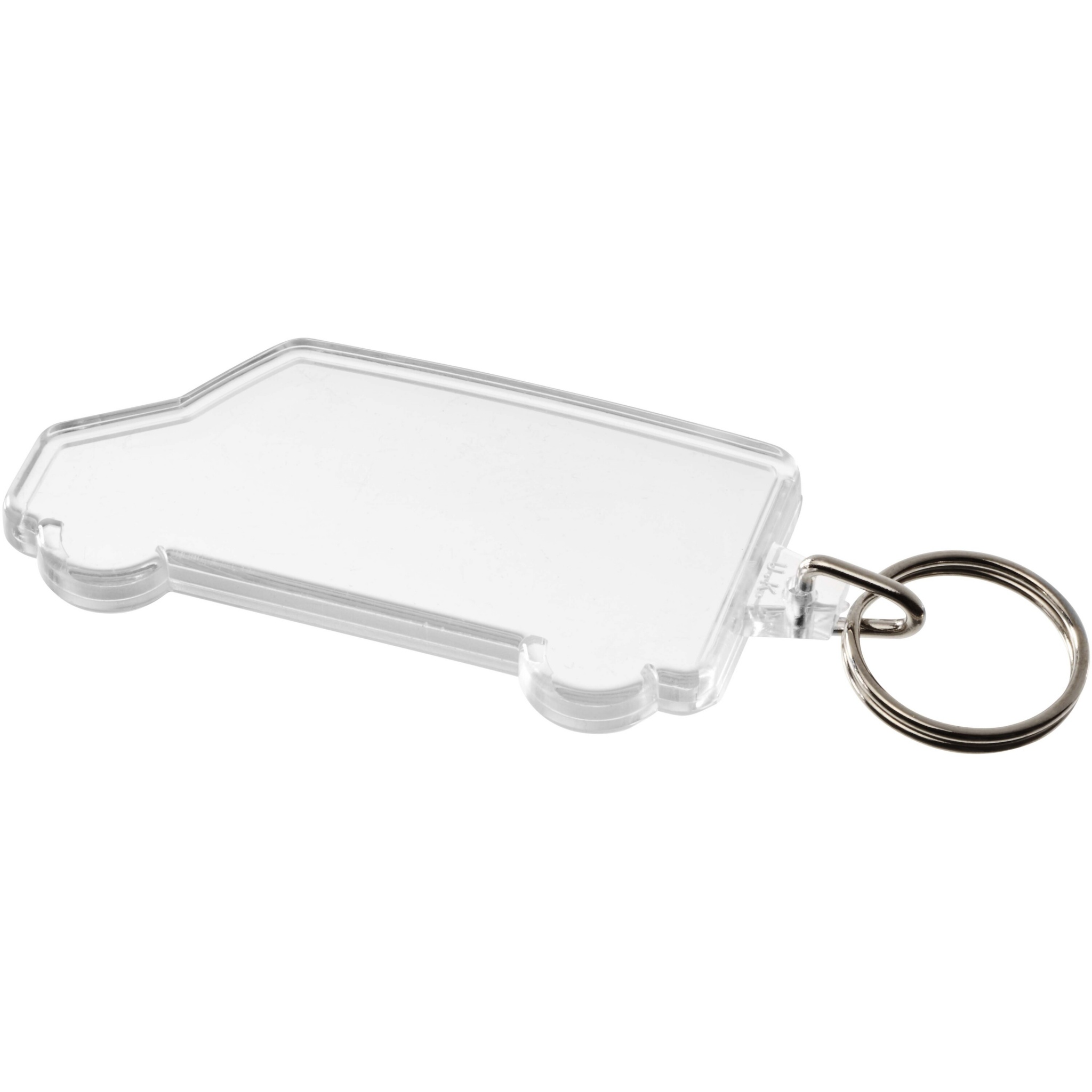 Läbipaistev kaubikukujuline võtmehoidja metallist poolitatud võtmehoidjaga. Metallist silmusrõngas pakub lamedat profiili, mis sobib ideaalselt postitamiseks. Trükilehe mõõdud: 6,9 cm x 2,9 cm.