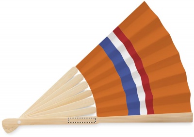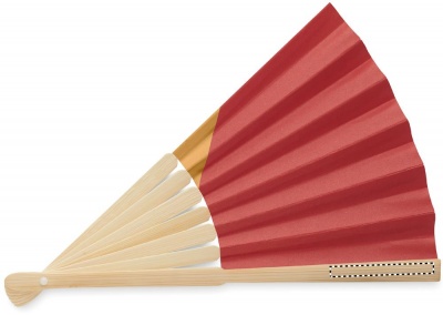 Manuaalne bambusest käsiventilaator lipukujundusega paberkangal.