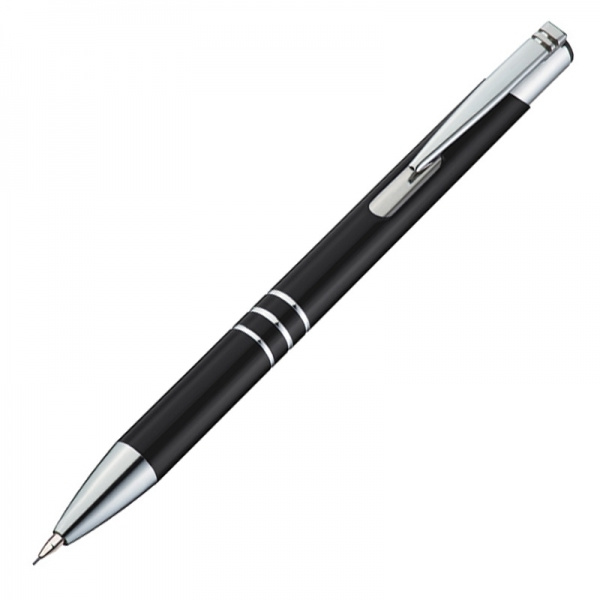 Alumiiniumist kirjutuskomplekt, mis koosneb suure mahutavusega sinise kirjaga pastapliiatsist ja mehaanilisest pliiatsist, millest igaühel on dekoratiivsed rõngad. Teie logo graveeritakse klipist paremale.