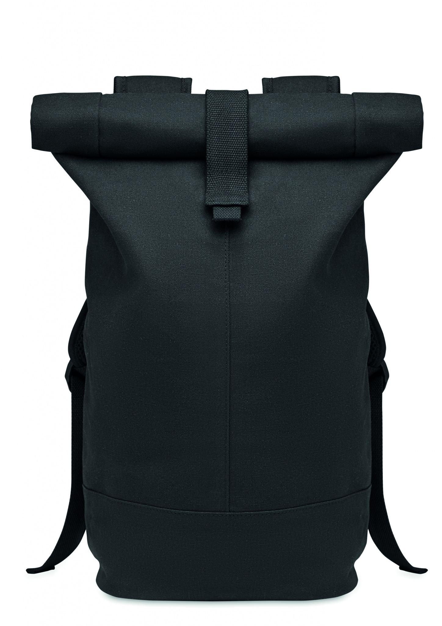 Rolltop seljakott kvaliteetsest 340 gr/m² pestud lõuendist polsterdatud seljatugevdusega. Vooder on RPET 210D.