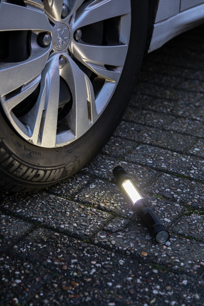 Ideaalne töövalgusti igaks vajaduseks – see topeltmagnetiline LED-töövalgusti sobib suurepäraselt mis tahes metallpinnale kinnitamiseks optimaalse valgustuse tagamiseks. See alumiiniumist taskulamp võimaldab pikendada selle tavasuurusest 26 cm-st 64 cm-ni, võimaldades teil korjata raskesti nähtavatesse kohtadesse kinni jäänud esemeid, mille ees on magnet. See taskulamp on varustatud kolme 10-liitrise LED-iga, mis tagavad eriti ereda särituse pimedas ruumis, ja 80-luumenilise COB-valgusega. Kui taskulambi pea on välja sirutatud, muutub pea painduvaks ja seda saab reguleerida igas suunas. Sisaldab patareisid otseseks kasutamiseks.