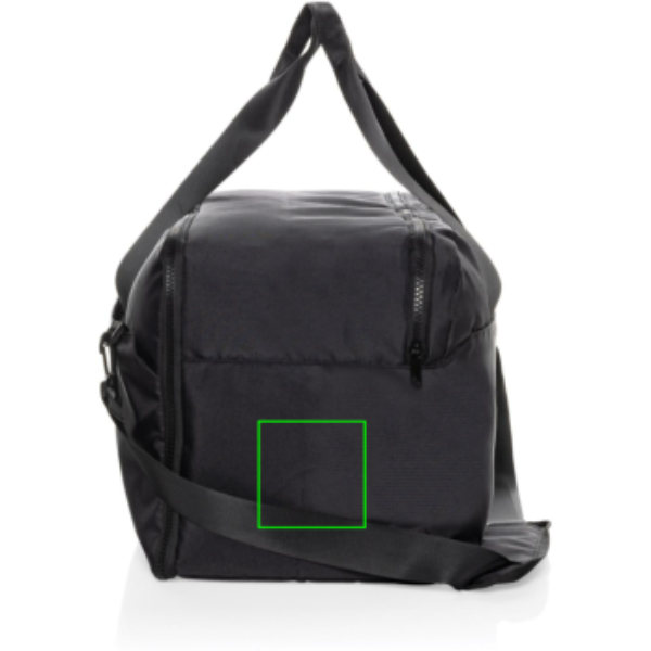 Standardne Swiss Peak nädalavahetusekott 15"6-tollise sülearvuti sahtliga ärireiside jaoks. Valmistatud Aware™ RPET 300D/150D abil. Põhisahtlis on lisataskud ja lukuga tasku sees. Jäigad tõmblukud