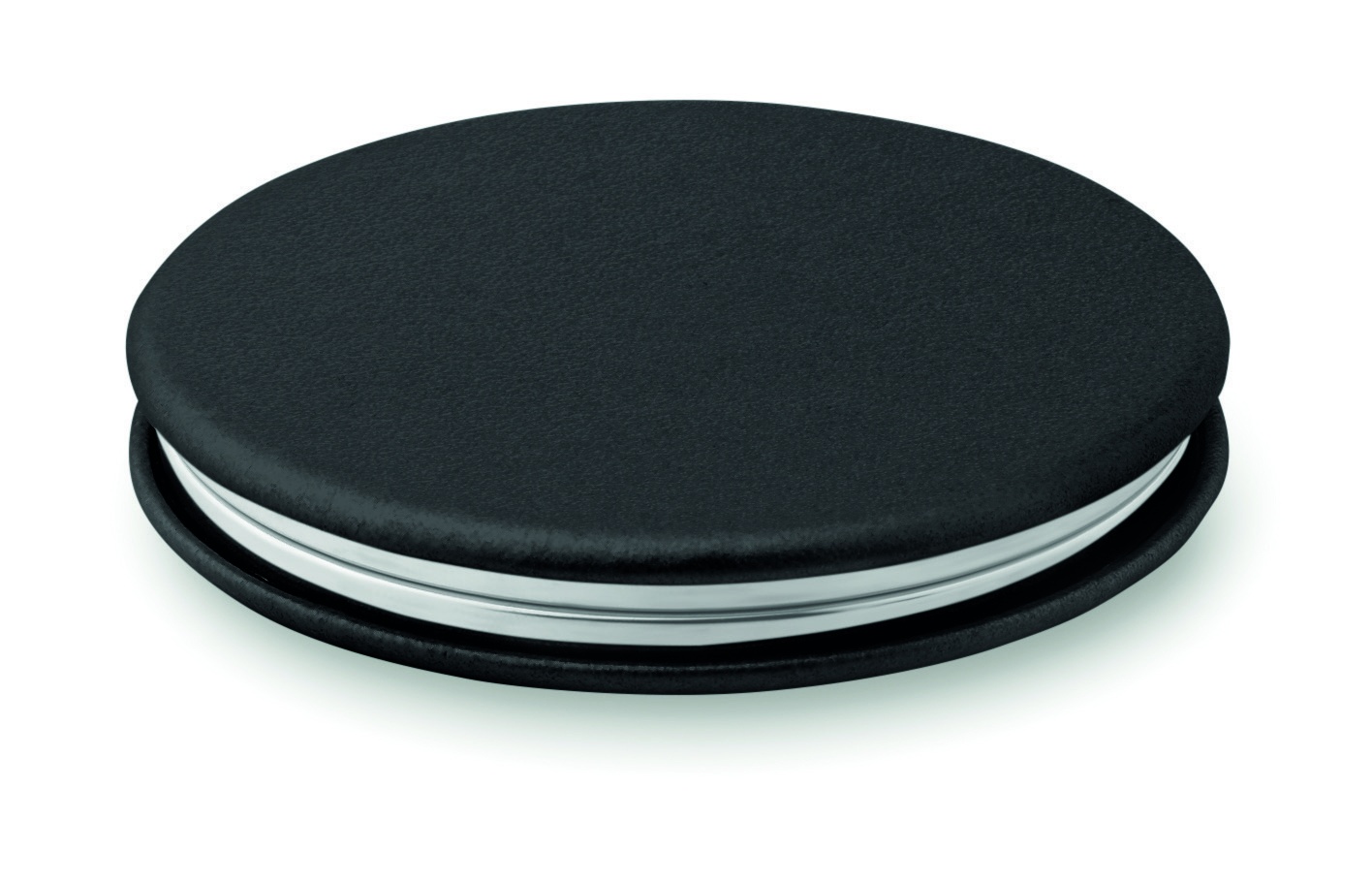 Ümmarguse kujuga magnetkinnisega topeltpeegel PU-kattega.