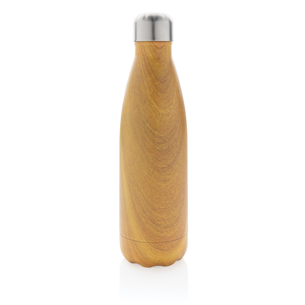 Vaakumisolatsiooniga roostevabast terasest pudel puidutrükiga