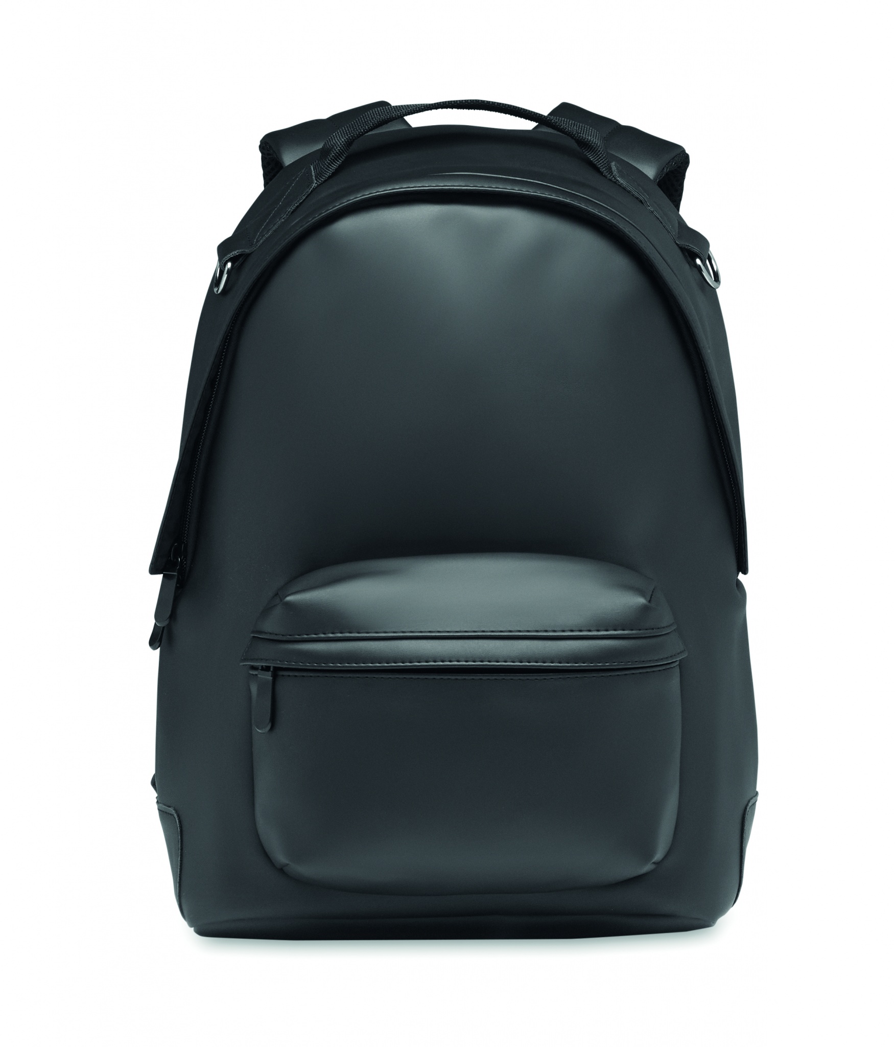15 tuuman kannettavalle reppu pehmeää PU-materiaalia, pehmustettu selkäosa ja vahvistettu pohja. Vetoketjullinen etutasku. Vuori on 210D RPET.