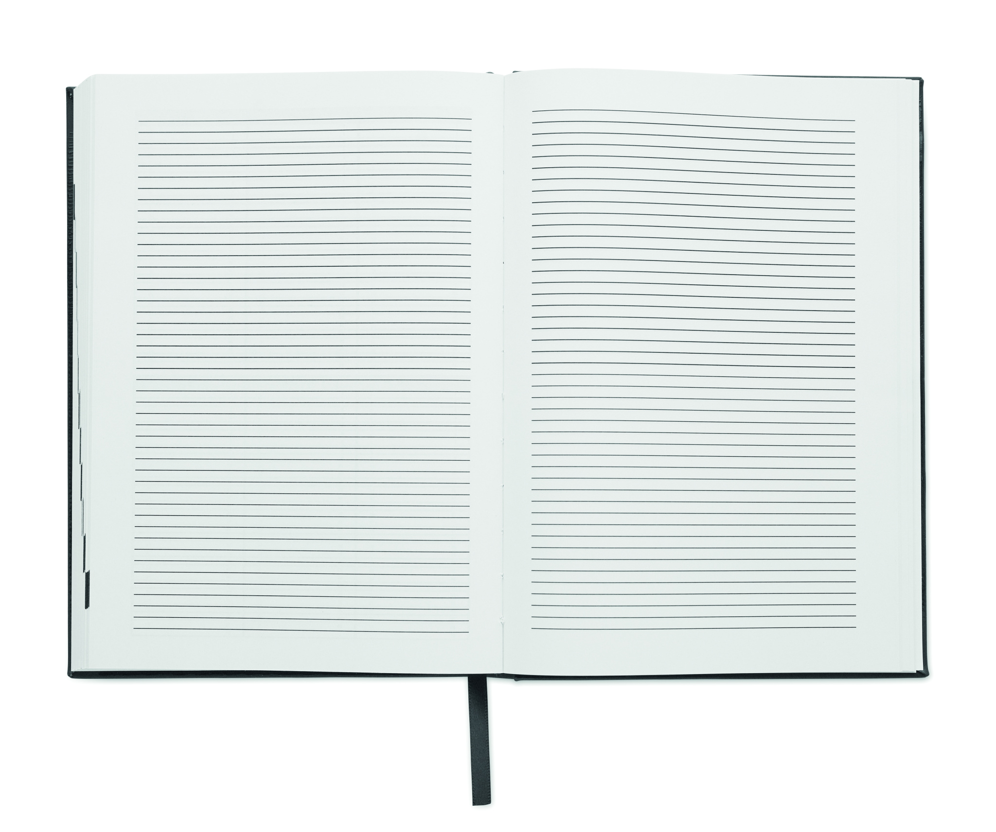 A5 ikuinen päiväkirjamuistikirja, joka on valmistettu 60 % kierrätetystä kuluttajakäytöstä peräisin olevasta polyesteristä ja jossa on 40 % PU-kannet. 416 sivua (208 arkkia) 70 g/m² kierrätyspaperista. Mukana yhteensopiva polyesterinauhalla varustettu kirjanmerkki.