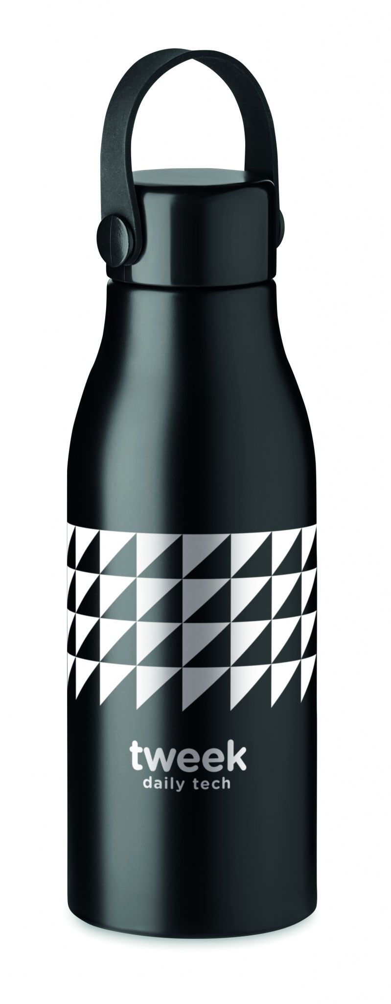 Yksiseinäinen alumiinipullo ABS-korkilla ja silikoniripustimella. Tilavuus 650 ml.