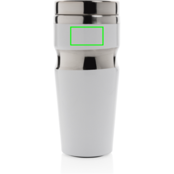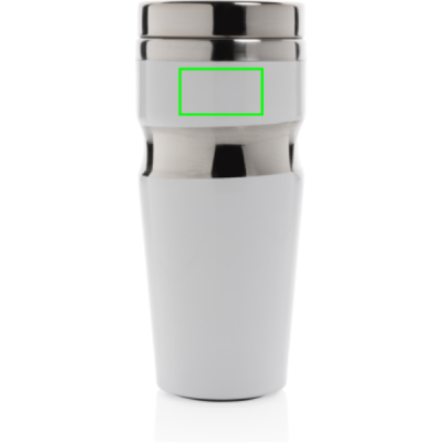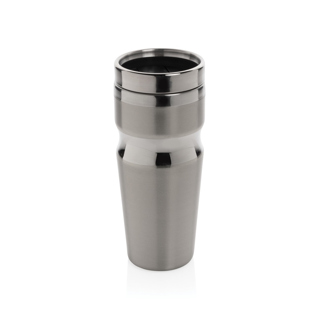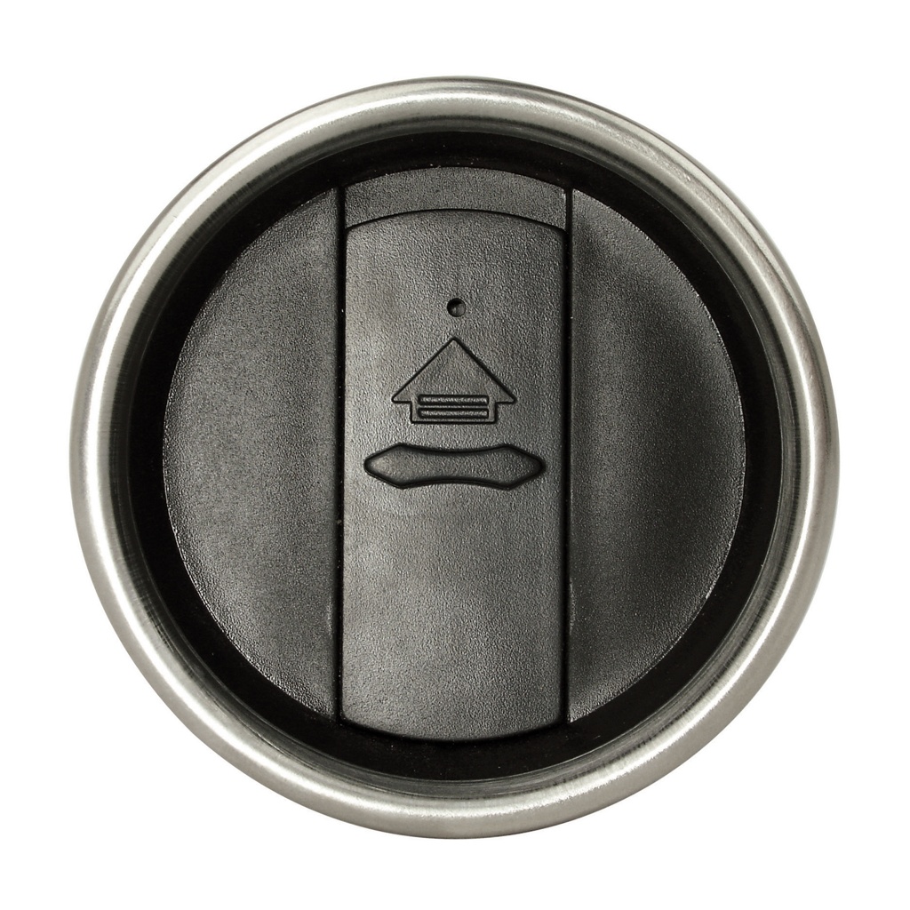 350 ml kaksiseinäinen juomamuki ruostumattomasta teräksestä, ruostumaton teräskansi, sulkumekanismi vuotamisen estämiseksi. Rekisteröity design®