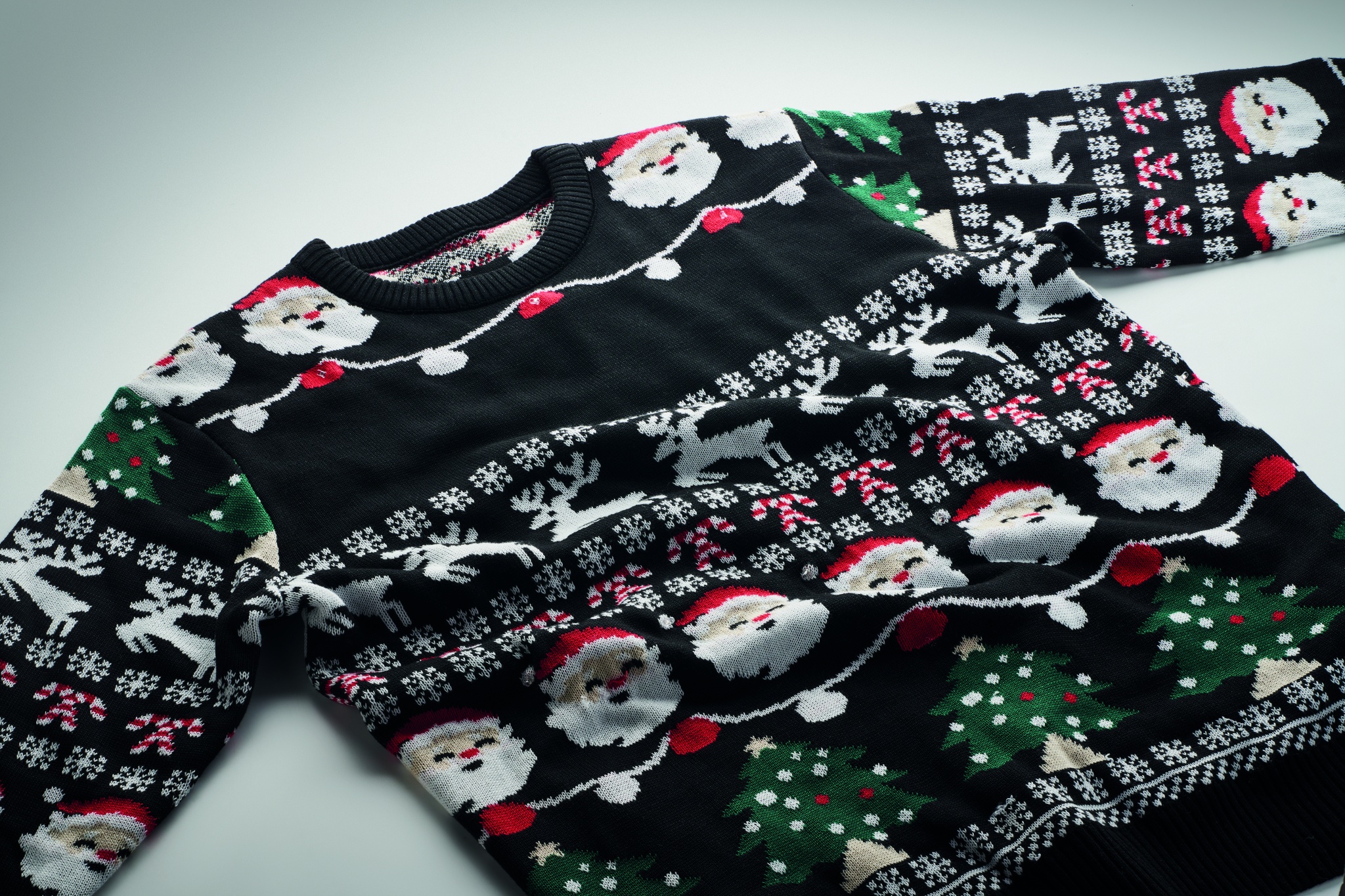 Jouluinen 10 LED-valoilla varustettu akryyli villapaita. Koko: L/XL. Ilmesty tyylillä töihin tai perheen jouluillalliselle tämän juhlavan puseron kanssa. Irrotettava paristolokero. Mukana 2 CR2032-paristoa.