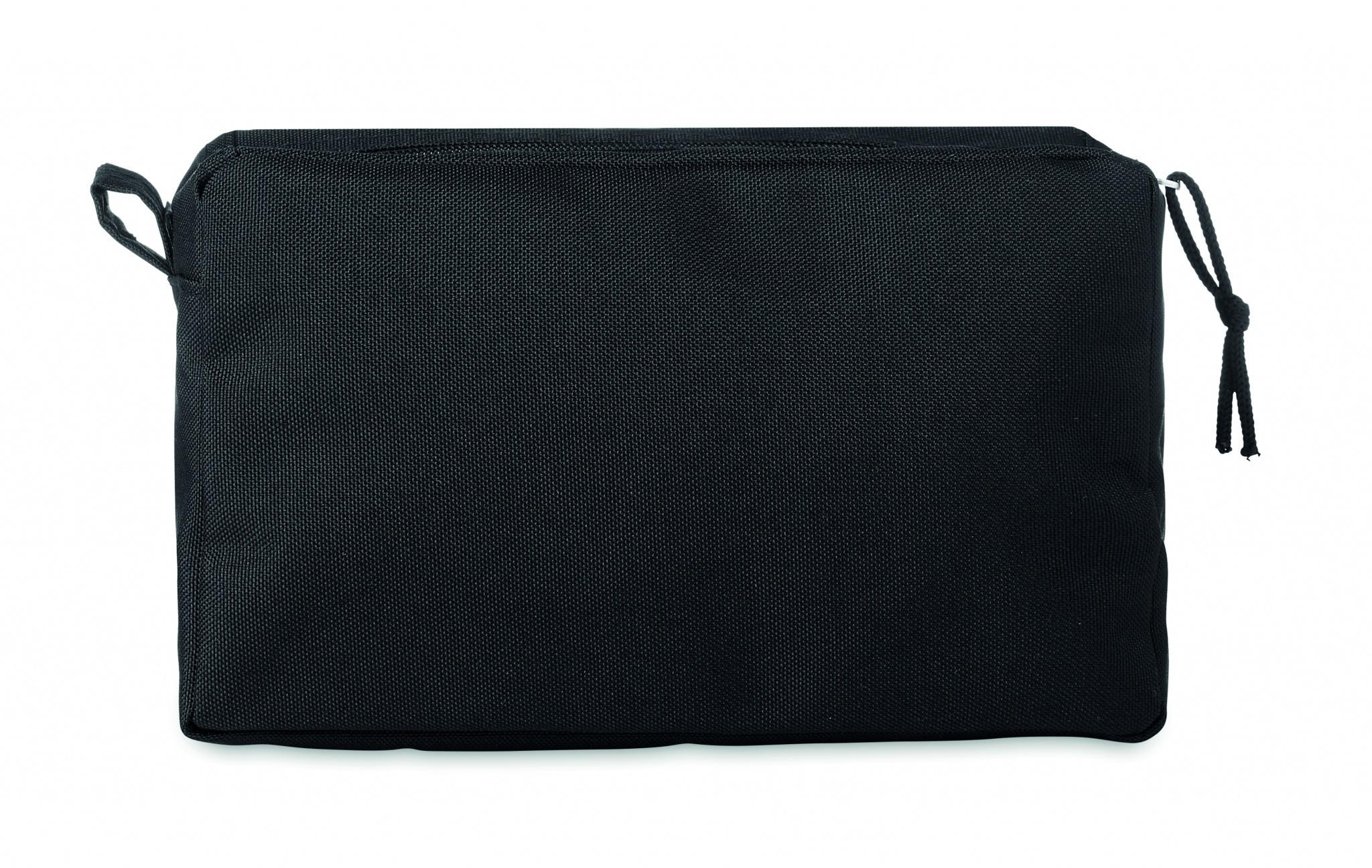 600D RPET- kosmetiikkalaukku, kaksinkertaisella vetoketjulla.