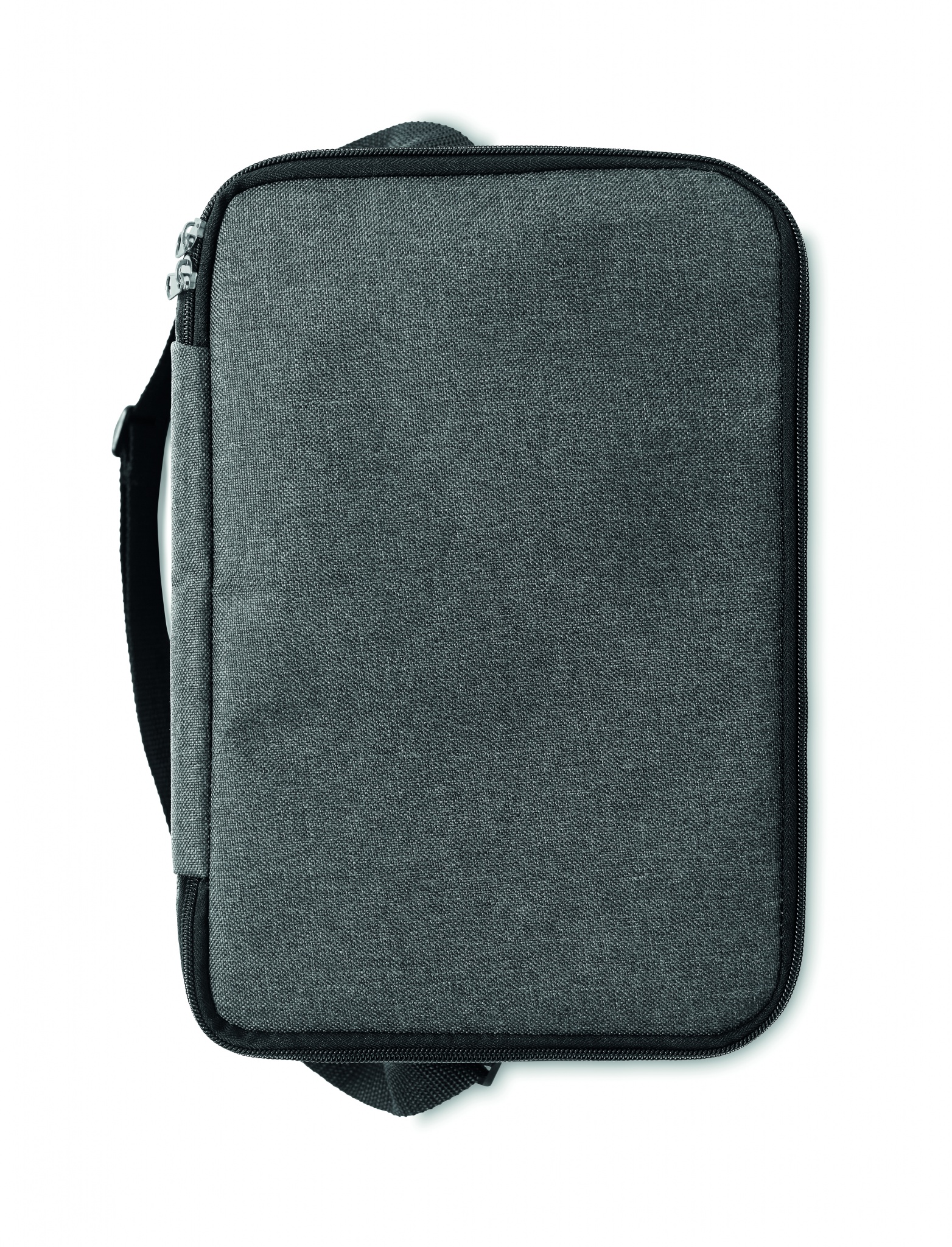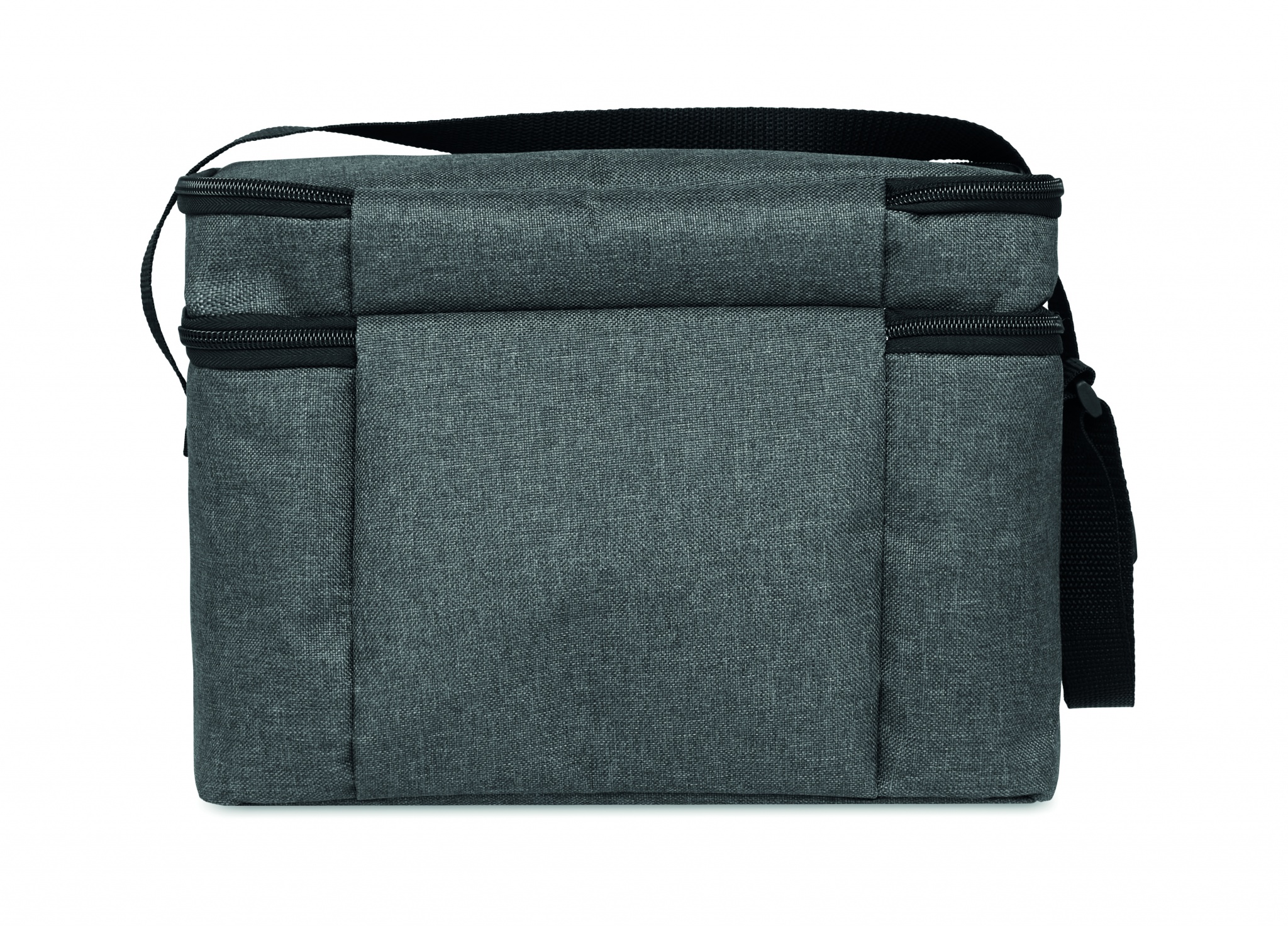 600D RPET 2- sävyinen kylmälaukku, 2 lokerolla ja PEVA vuorella. Sisältää taskun edessä ja säädettävän olkahihnan. Eristysmateriaalina 0,15mm PEVA + 3 mm vaahtomuovia.