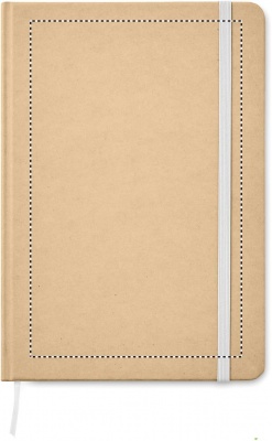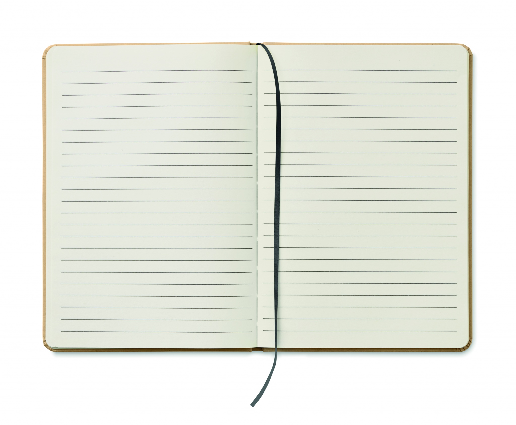 A5 muistikirja kovalla kierrätetyllä kartonkisella kannella, 160 viivoitettua sivua (80 arkkia) sisältää elastisen sulkuhihnan ja kirjanmerkin.