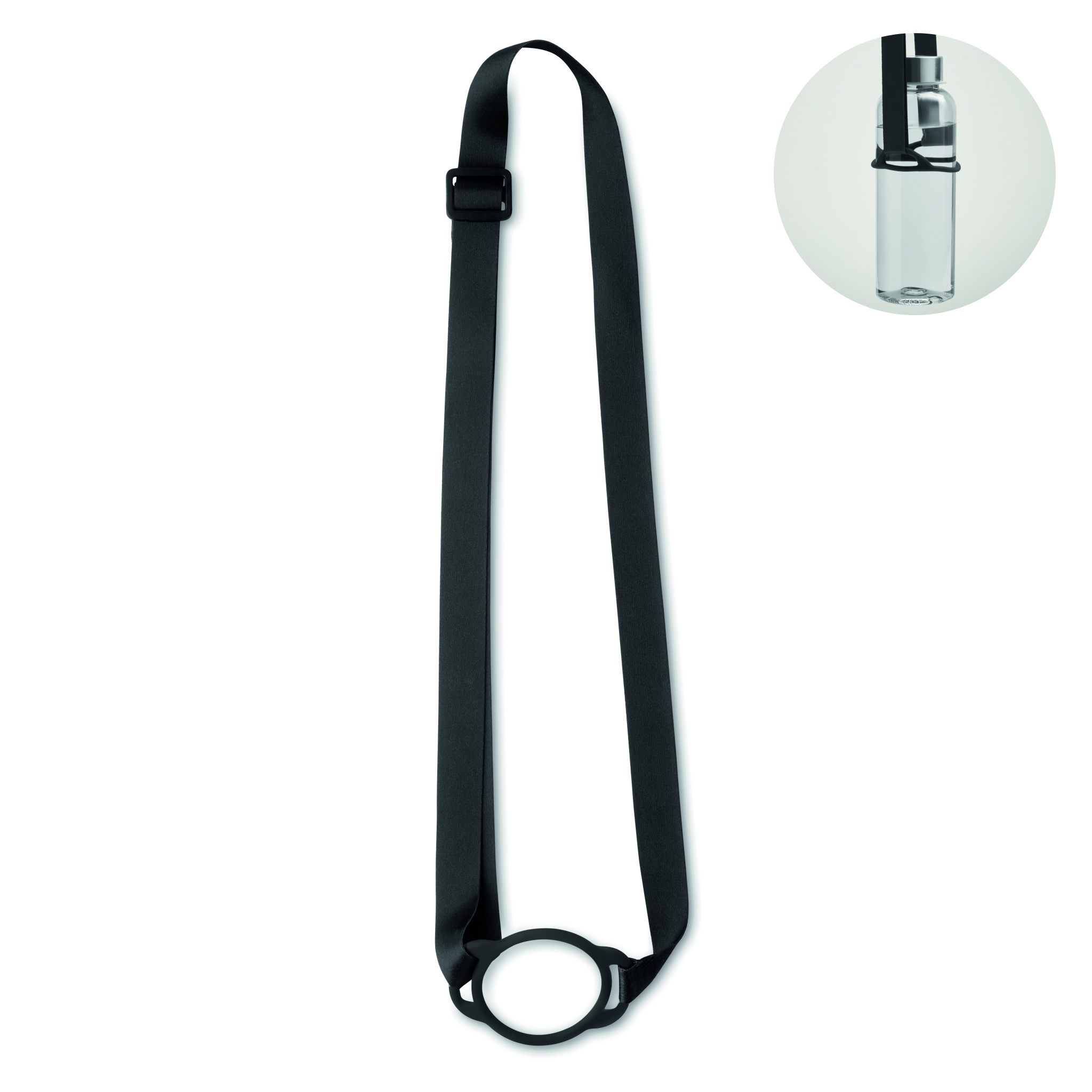Nauha silikonifestivaalitapahtumamukinpidikkeellä (halkaisija 6 cm) ja PP säädettävällä soljella. Nauha 20 mm leveä.