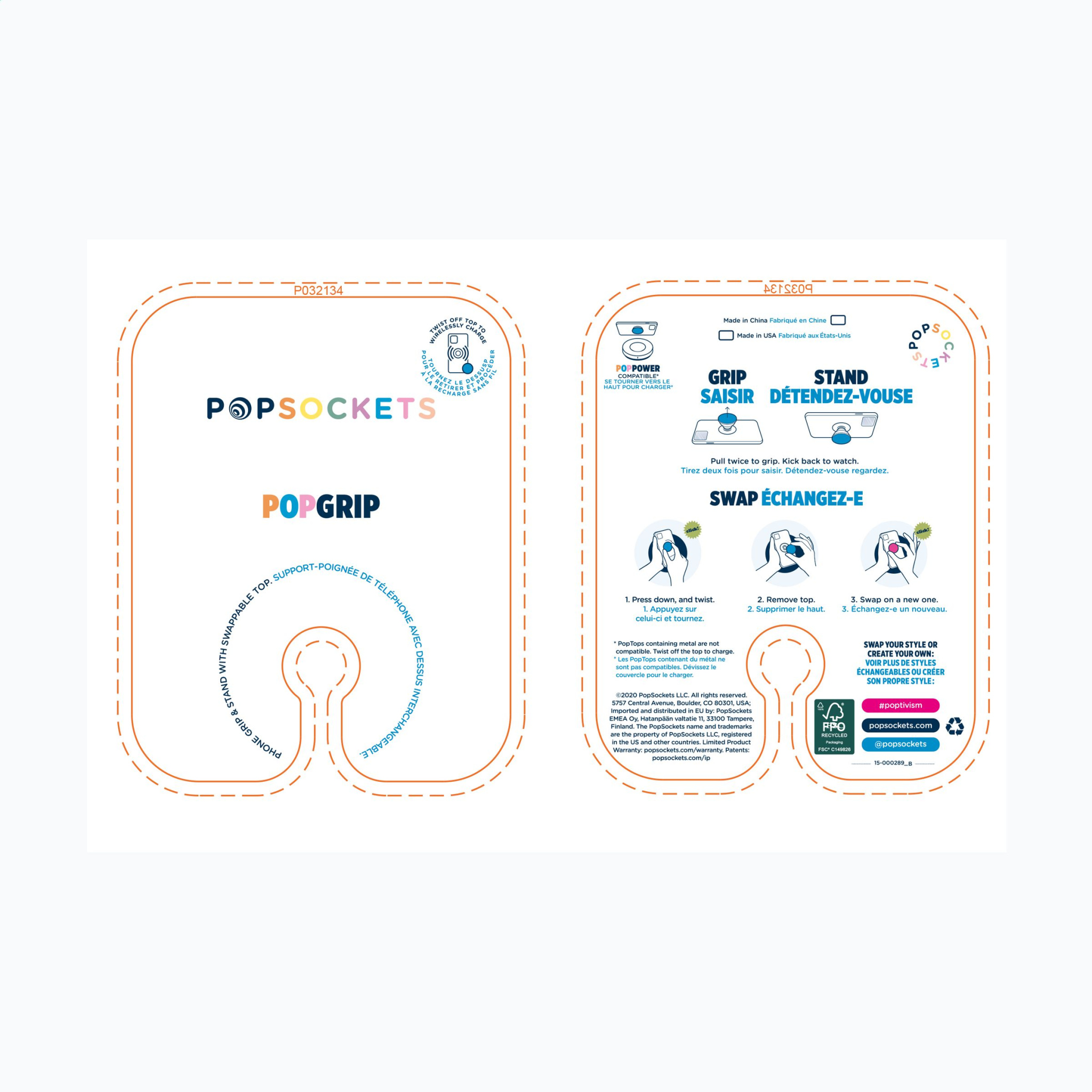 PopSocket® on kätevä monitoimipuhelinlisävaruste. Uusi vaihdettava muovinen PopGrip ja vaihdettava PopTop. Tämä PopGrip on yhteensopiva langattoman latauksen kanssa PopTopin helpon irrotuksen ansiosta. Kiinnitä tämä esine puhelimen takaosaan 3M-liimanauhalla ja käytä käteviä toimintoja: mukava ote paremman otteen saamiseksi, toimiva jalusta ja selfie-pidike. Voidaan sijoittaa kahteen eri ponnahdusasentoon ja joustava, jotta voit sijoittaa älypuhelimen haluamallasi tavalla. PopSocket® on helppo irrottaa ja sitä voidaan käyttää uudelleen jopa 10 kertaa. Sopii kaikille yleisesti käytetyille älypuhelimille, iPhoneille ja muille laitteille. Lue mukana toimitetut ohjeet PopSocketin® optimaalista käyttöä ja huoltoa varten. Lisätietoja toimitusajasta: 60 - 2 500 yksikköä: 1 viikko, 2 500 - 5 000 yksikköä: 2 viikkoa. Yli 5000 yksikköä, hinta ja toimitusaika pyynnöstä. PopSockets® on saatavana vain painatuksella.