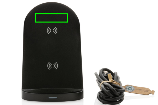 15 W:n langaton pikalaturiteline kahdella integroidulla latauskelalla. Jalusta tukee sekä vaaka- että pystylatausta. Valmistettu RCS (Recycled Claim Standard) -sertifioiduista kierrätysmateriaaleista. Kierrätetty kokonaissisältö: 56 % tuotteen kokonaispainosta. RCS-sertifiointi varmistaa kierrätysmateriaalien täysin sertifioidun toimitusketjun. Mukana 150 cm PVC-vapaa kierrätetystä TPE-materiaalista valmistettu latauskaapeli. ; Tuote ja tarvikkeet 100% PVC-vapaita. Pakattu FSC-sekoituksesta valmistettuun pakkaukseen. Langaton lataus yhteensopiva Androidin uusimpien sukupolvien, iPhone 8:n ja sitä uudempien kanssa. Tulovirta: 12V/1.67A. Langaton lähtövirta: 9V/1,5A 15W.