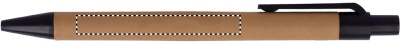 Kamštinis sąsiuvinis su rašikliu. Minkštas kamštienos dangtelis. Dvigubas laidas. 140 linijuotų perdirbto popieriaus puslapių (70 lapų). Atitinkamas mygtukas tušinukas su perdirbta kartonine statine ir kukurūzų PLA detalėmis. Juodas rašalas. Elastinis rašiklio laikiklis. Kamštiena yra 100% natūrali medžiaga. Dėl savo struktūrinio pobūdžio ir paviršiaus poringumo galutinis spausdinimo rezultatas kiekvienam gaminiui gali turėti nukrypimų.
