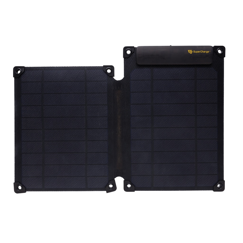 10 W dvigubas sulankstomas saulės kolektorius, leidžiantis tiesiogiai įkrauti mobilųjį įrenginį, garsiakalbį, maitinimo bloką ar kitą įrenginį. Tiesiog prijunkite laidą prie įrenginio, kol skydelis yra saulėje, ir pradėkite įkrauti. Mokesčio dydis priklauso nuo sąlygų. Skydelyje naudojamos aukštos kokybės monokristalinės saulės baterijos, kurių konversijos koeficientas yra 21%. Su USB A ir C tipo išėjimu (maks. 5V/1A) ir įkrovimo indikatoriumi, rodančiu įkrovimo greitį. Saulės įkrovimo greitis: 5V/2000mA. Pagaminta iš PET medžiagos ir RCS sertifikuoto perdirbto ABS. Su integruota stovo funkcija, leidžiančia naudoti saulės baterijas optimaliu kampu. IPX 6 atsparus vandeniui. Supakuota į FSC® mišinio pakuotę.