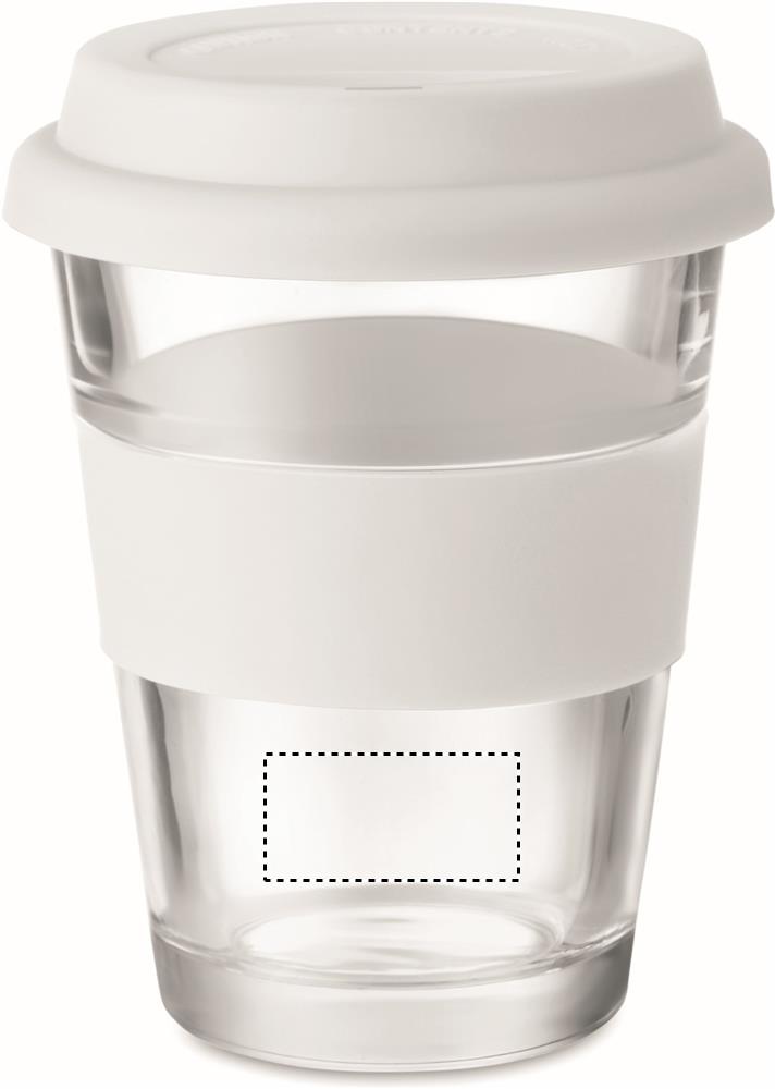 Stiklinis puodelis su silikoniniu dangteliu ir rankena. Talpa 350 ml. Kadangi tai yra vienos sienelės puodelis, šilumos perdavimas vis tiek gali vykti.
