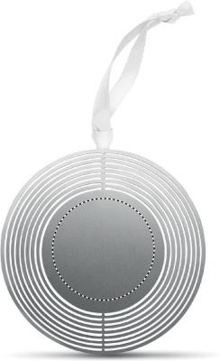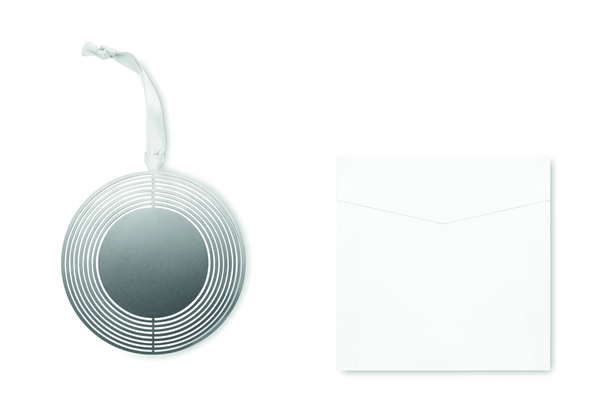 Apļveida formas dekoratīvs ornaments no nerūsējošā tērauda ar lenti dāvanu aploksnē. Viegli salokāms līdzenai nosūtīšanai un uzglabāšanai.