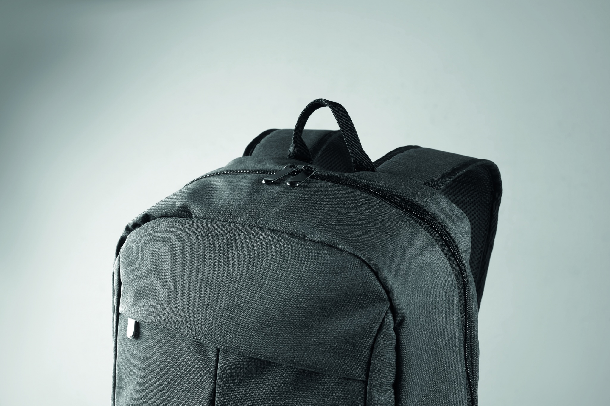 15 collu datora mugursoma no 360D 2 toņu poliestera. Ietver vienu iekšējo 15 collu klēpjdatora nodalījumu un vienu galveno priekšējo daļu ar rāvējslēdzēja kabatu. Polsterētas muguras un plecu siksnas. Papildu kabata planšetdatora nodalījumam. Ratiņu turētājs aizmugurējā pusē.