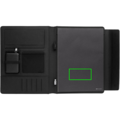 Оставайтесь организованными и эффективными с этим прекрасным беспроводным портфелем формата A5! Он предлагает возможность беспроводной зарядки, чтобы вы всегда были на связи. Входящий в комплект внешний аккумулятор можно использовать отдельно. Этот элегантный портфель оснащен встроенной беспроводной зарядной подставкой для телефона, эластичной петлей для ручки и дополнительными сетчатыми карманами. В комплект входят 64 листа/128 страниц линованной бумаги кремового цвета плотностью 70 г/м². Изготовлен из полиэстера и полиуретана. Вход: 5 В/2 А; Выход: 5 В/2 А. Беспроводной вход 5 В/2 А, выход 5 В/1 А. Поставляется в полноцветной подарочной коробке.