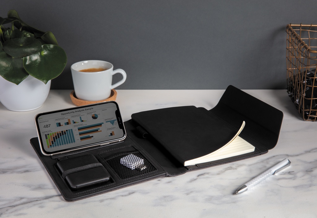 Лого трейд бизнес-подарки фото: Беспроводная зарядка Fiko A5 с портфелем powerbank