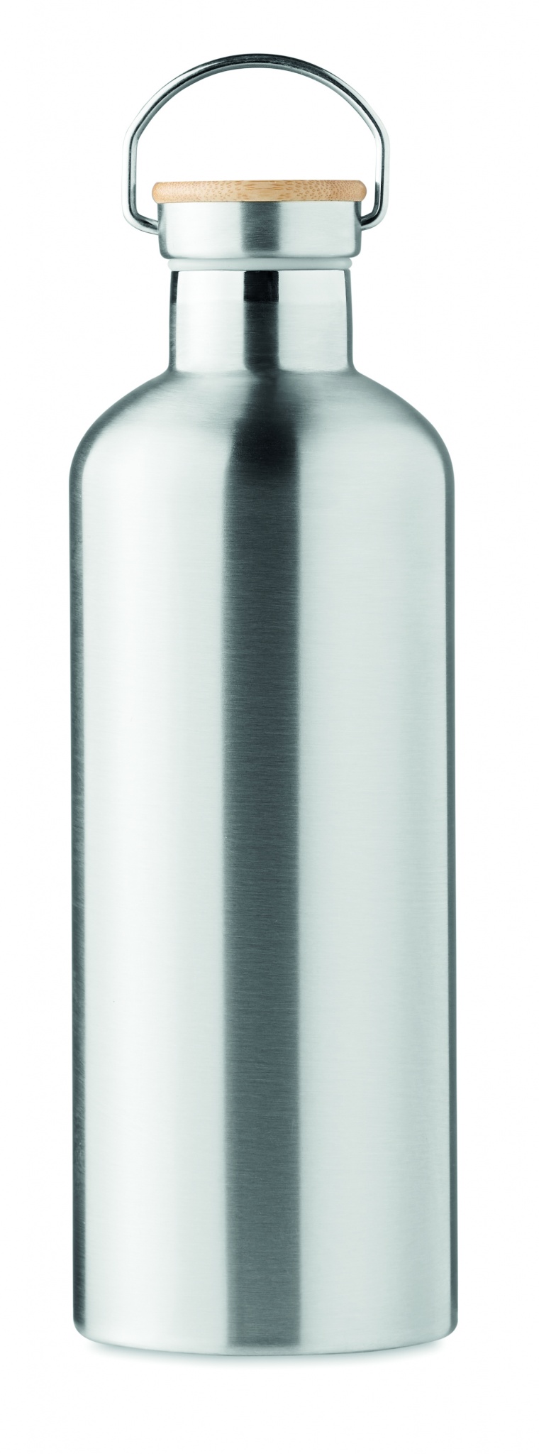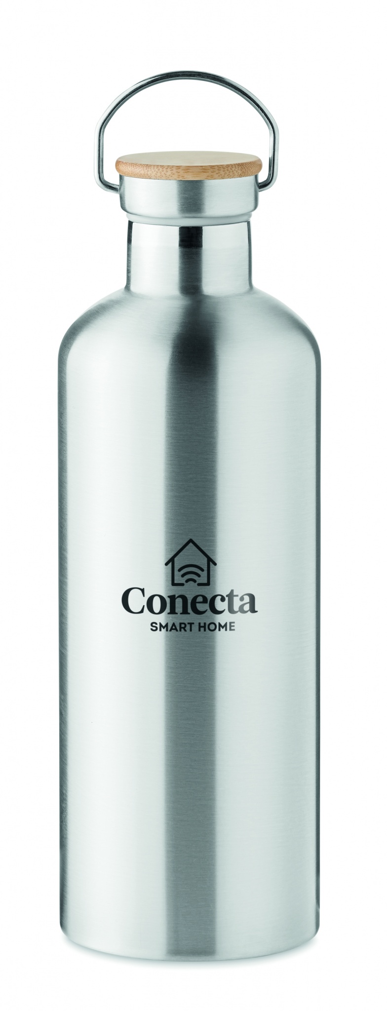 Вакуумная фляга из нержавеющей стали с двойными стенками, крышкой из бамбука и ручкой для переноски. Объем: 1500 мл. Герметична