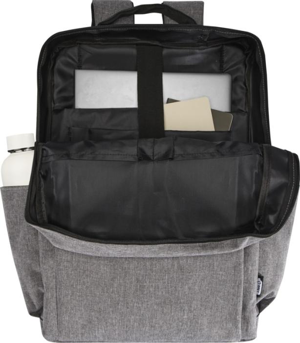 Рюкзак Libra изготовлен из переработанного полиэстера, сертифицированного согласно GRS, и подкладки из RPET. Он оснащен отделением для ноутбука диагональю 15 дюймов с дополнительным мягким карманом для планшета и карманами-органайзерами внутри. Снаружи также имеется несколько карманов, мягкие регулируемые плечевые ремни и ремень для крепления для ручки чемодана сзади. Выдерживает вес до 10 кг.
