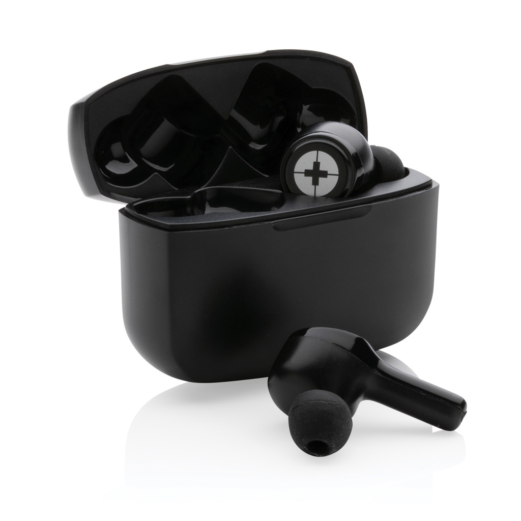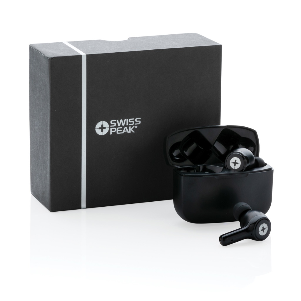 Лого трейд бизнес-подарки фото: Наушники-вкладыши Swiss Peak ANC TWS из переработанного пластика RCS