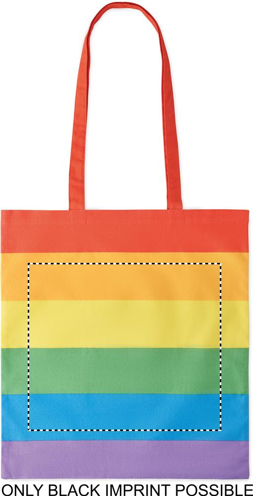 Хлопковая сумка для покупок с длинными ручками и радужной расцветкой. 200 гр/м².