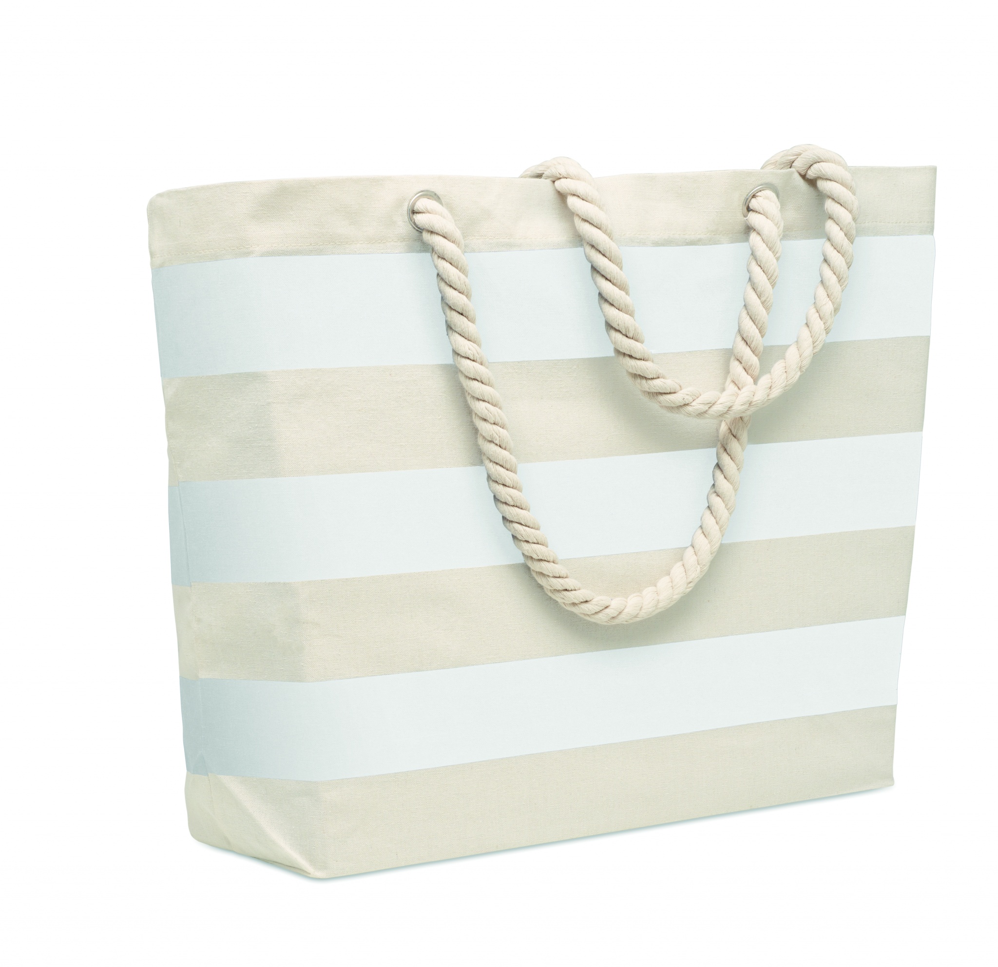 Полосатая пляжная сумка или сумка для покупок из хлопка с ручкой. 220 гр/м².